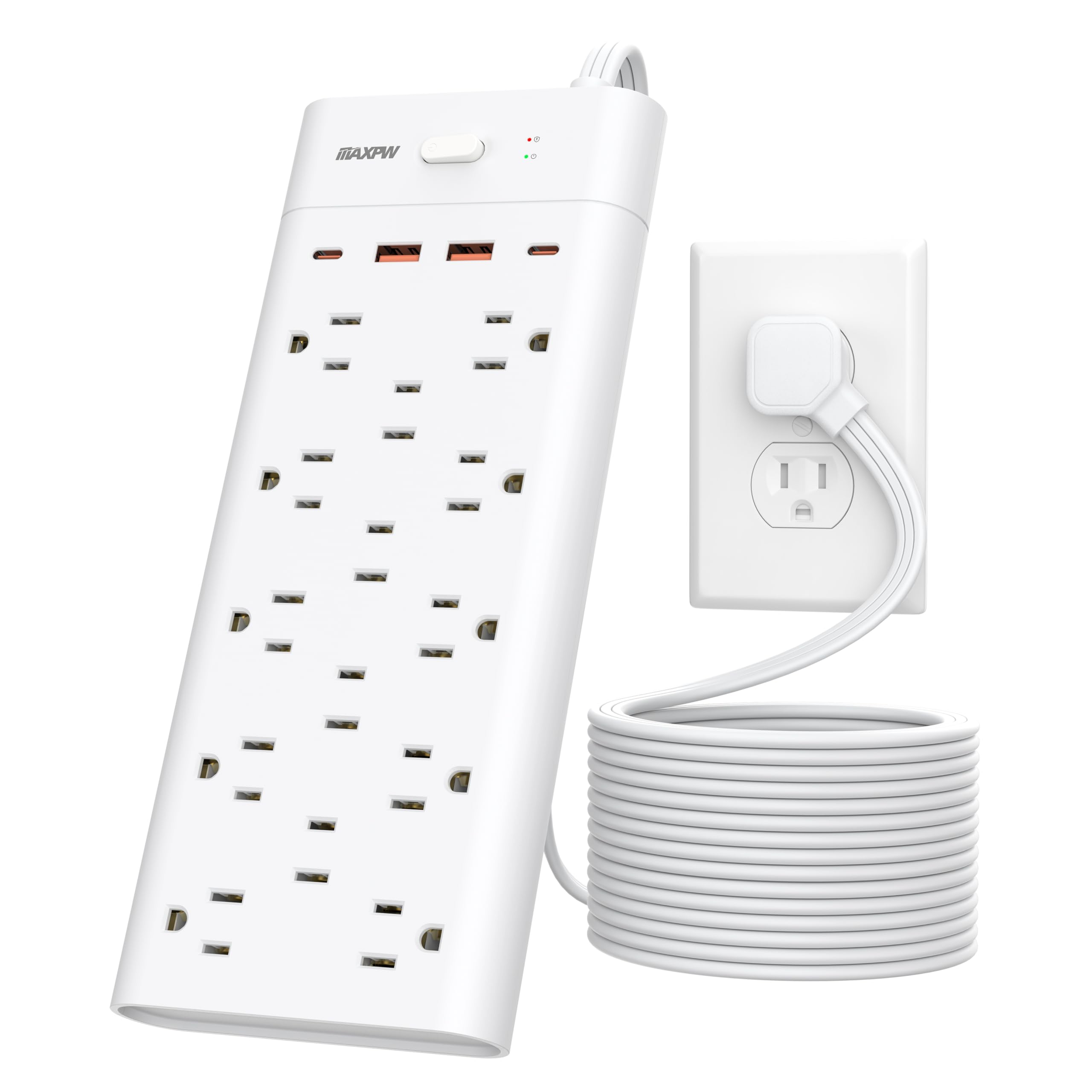 Power Strip Surge Protector Outlet Extender with 14 Outlets and 4 USB Ports (2 USB C), 15 Ft Extension Cord & Flat Plug, 1700 Joules, Wall Mount for|Electronics