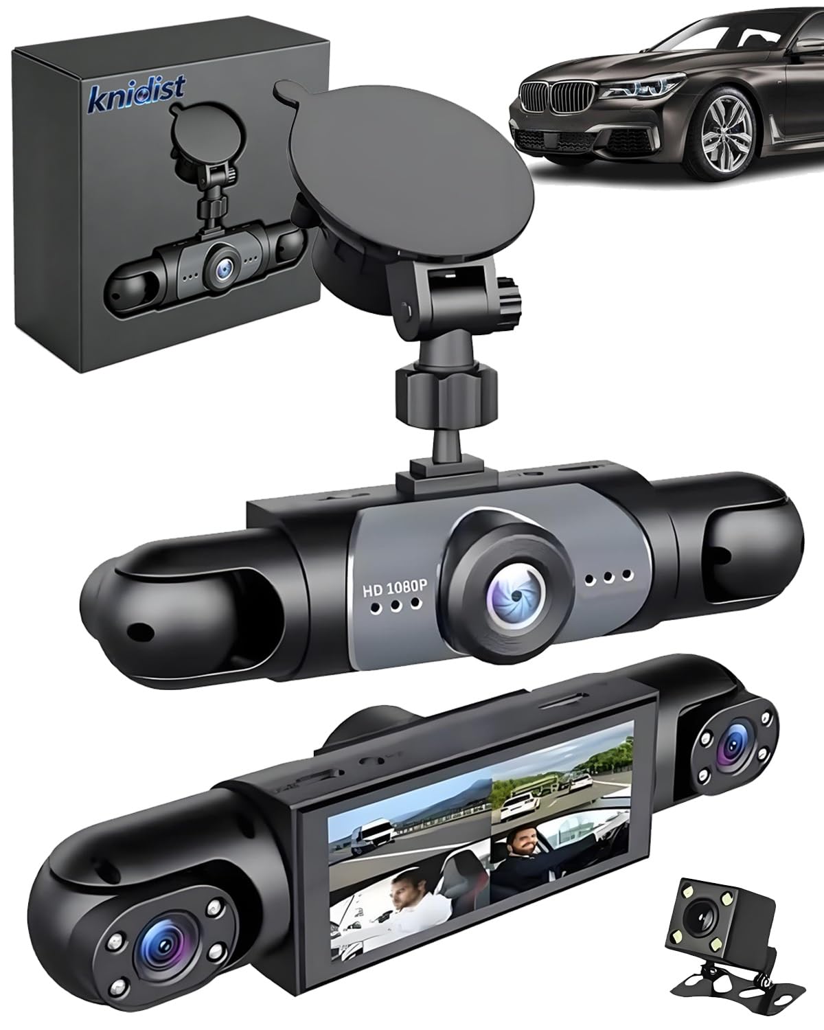Car Dash Cam Wireless Front Rear 360 Full View 4K Dual Security 24HR Rechargeable 4 Channel Mirror Rearview Interior Auto Video On-Dash Mounted|Electronics