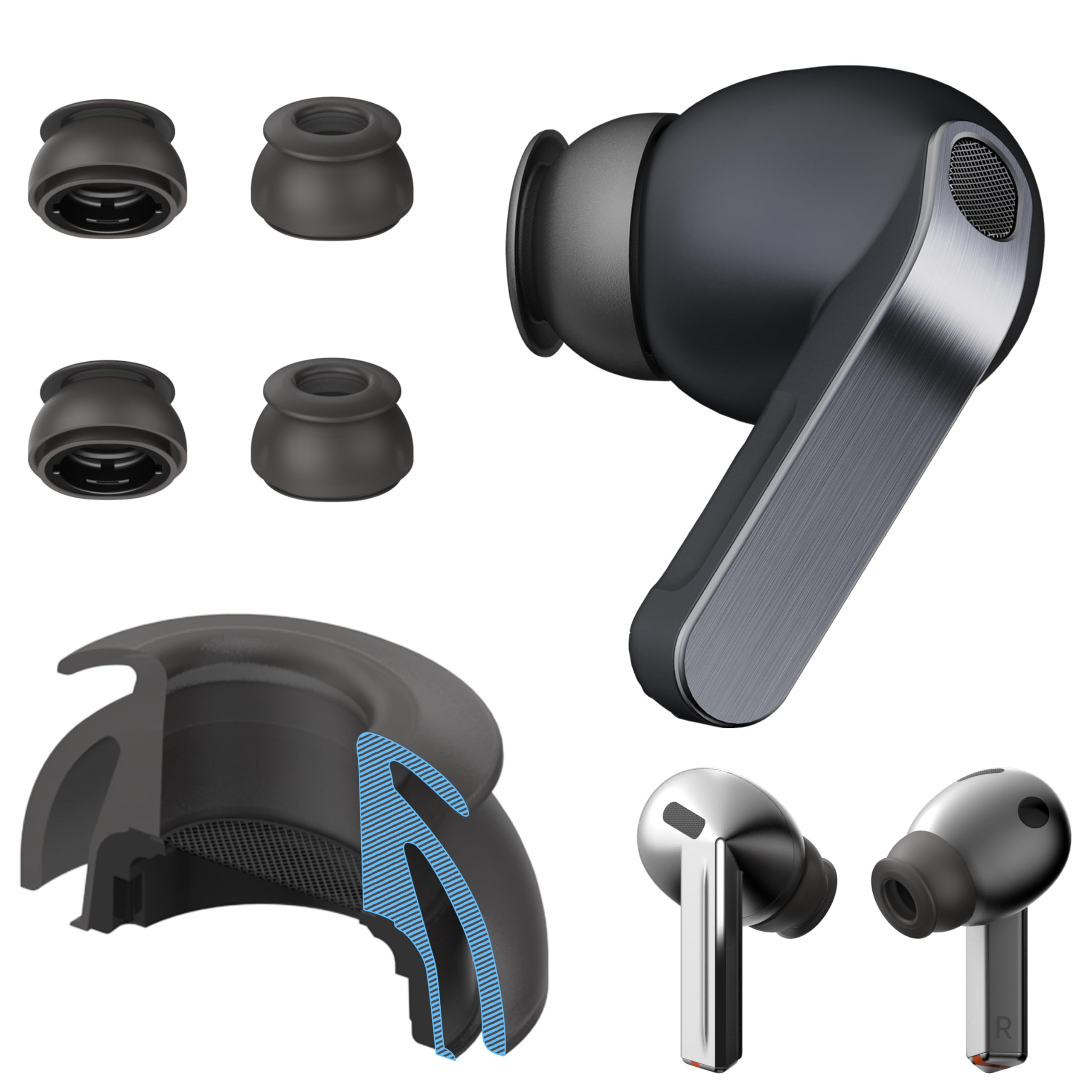 Premium Multi-Flange Eartips for Galaxy Buds3 Pro/Galaxy Buds4 Pro (Black, X-Small) – Always Fits, Never Slips|Electronics