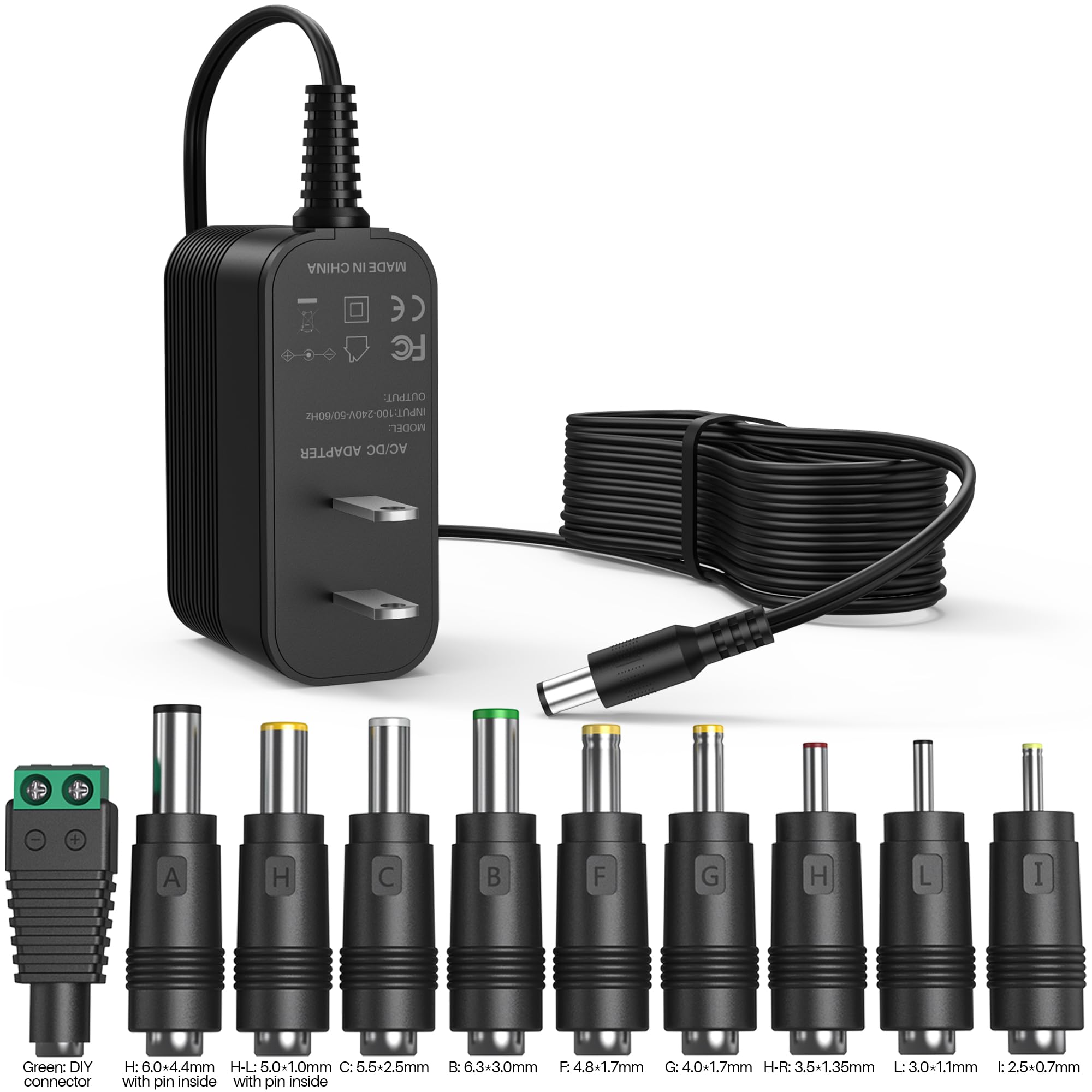 SoulBay 24W Universal AC/DC Adapter 12V 9V 7.5V 6V 5V 4.5V 3V Regulated Switching Power Supply with 8 Selectable Plugs for LED Strip Light Camera|Electronics