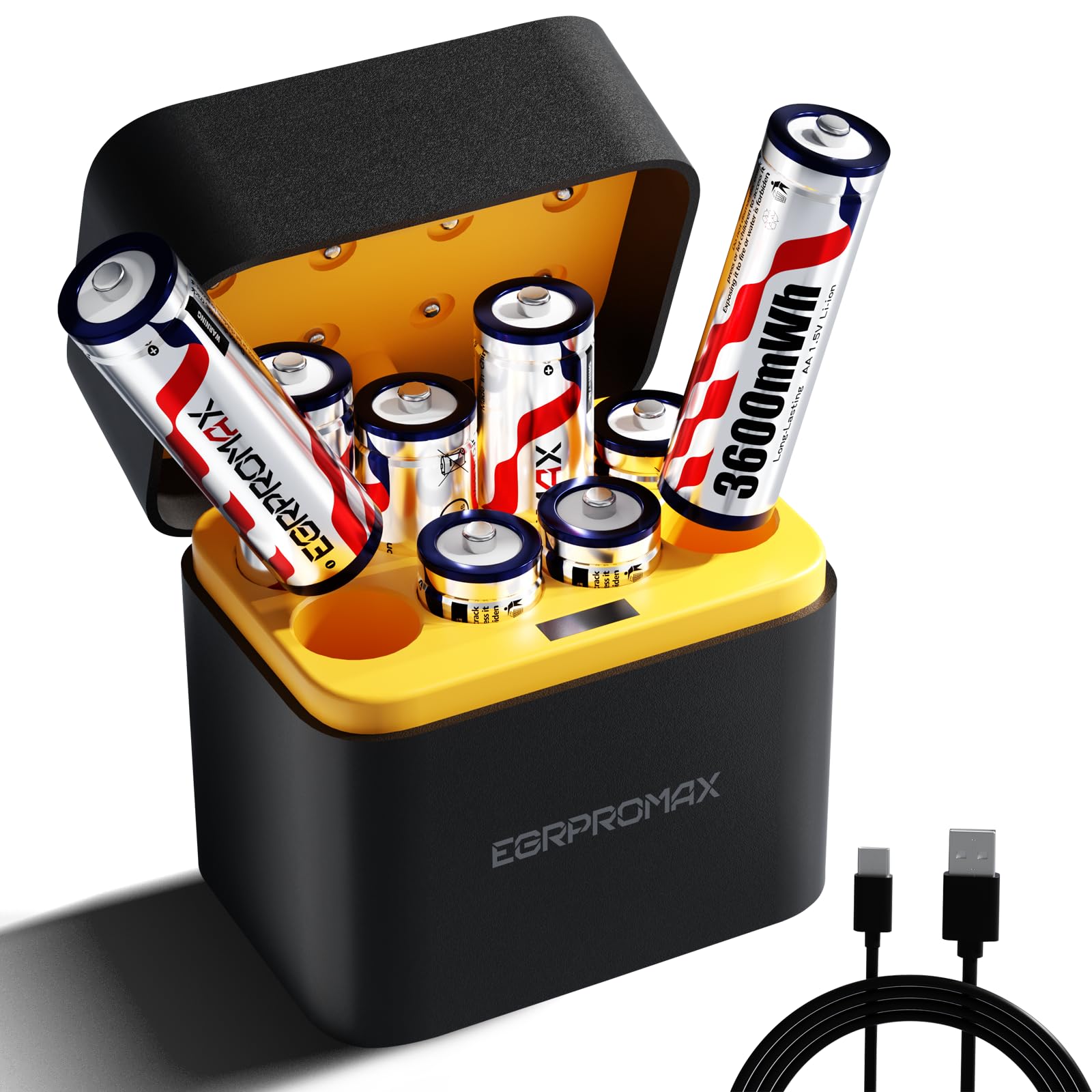 EGRPROMAX Rechargeable AA Batteries with Fast Charger,8 Pack 1.5V 3600mWh High Capacity aa Lithium Batteries,Constant Output Double a Batteries,2500+|Electronics