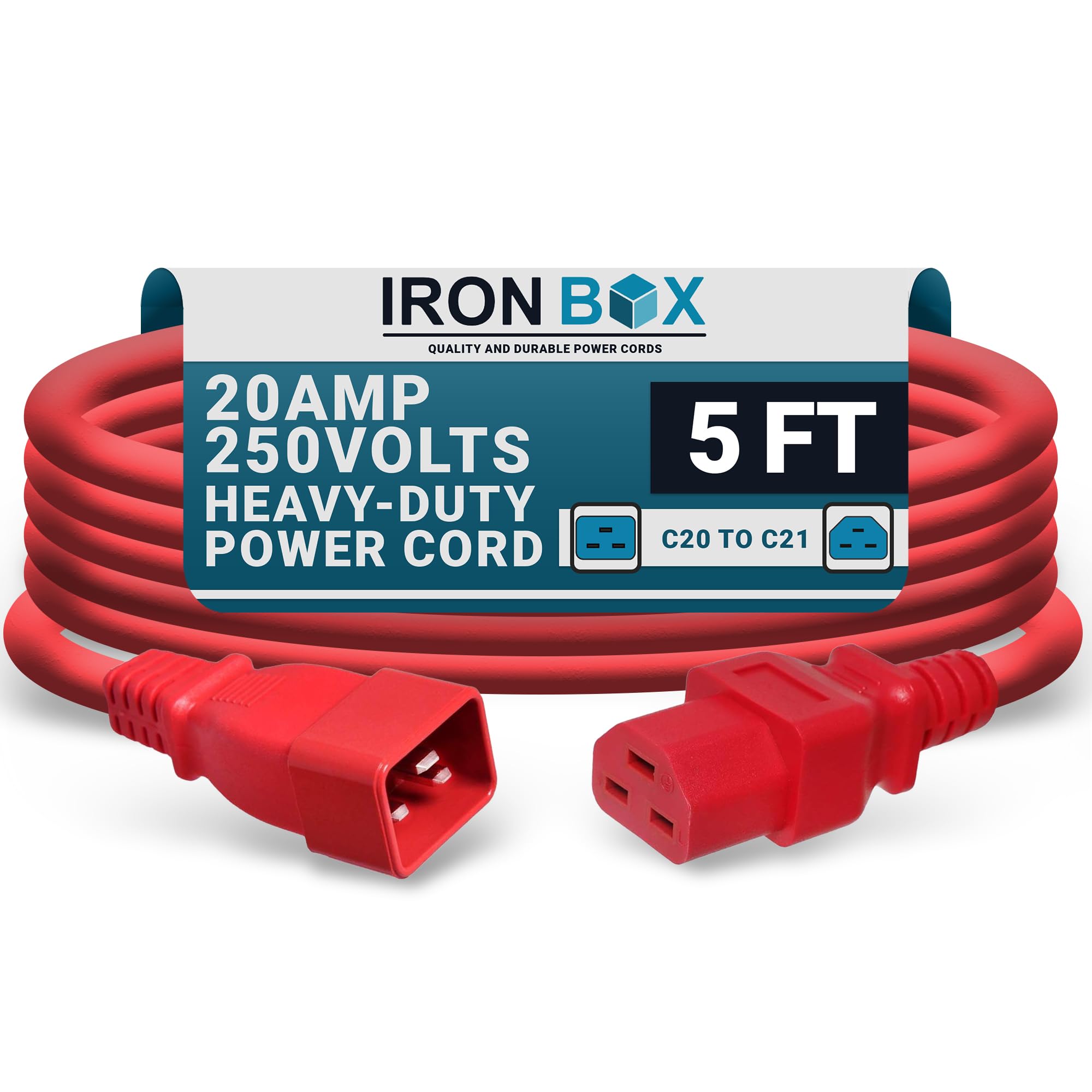 IronBox Electric - Heavy-Duty C20 to C21 Power Cable - 20A, 250V, 12/3 AWG - IEC 60320 Computer Power Supply Extension Cord - PSU Wire Connectors - UL|Electronics