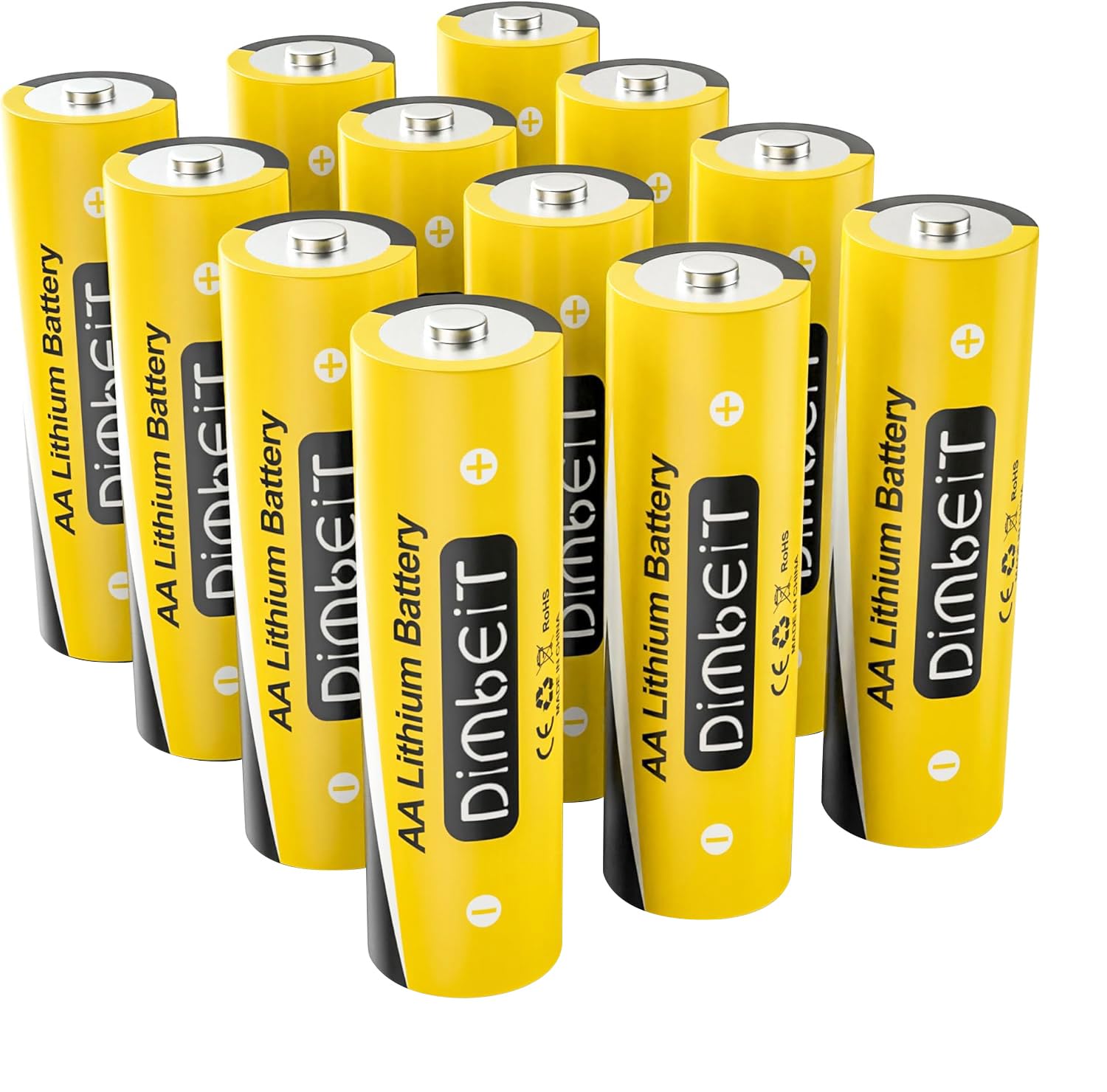 Dimbeit 12 Pack Lithium AA Batteries, Long Lasting 3000mAh 1.5v Lithium Double A Battery, 20-Year Shelf Life AA Size Batteries for High-Tech Devices【|Electronics