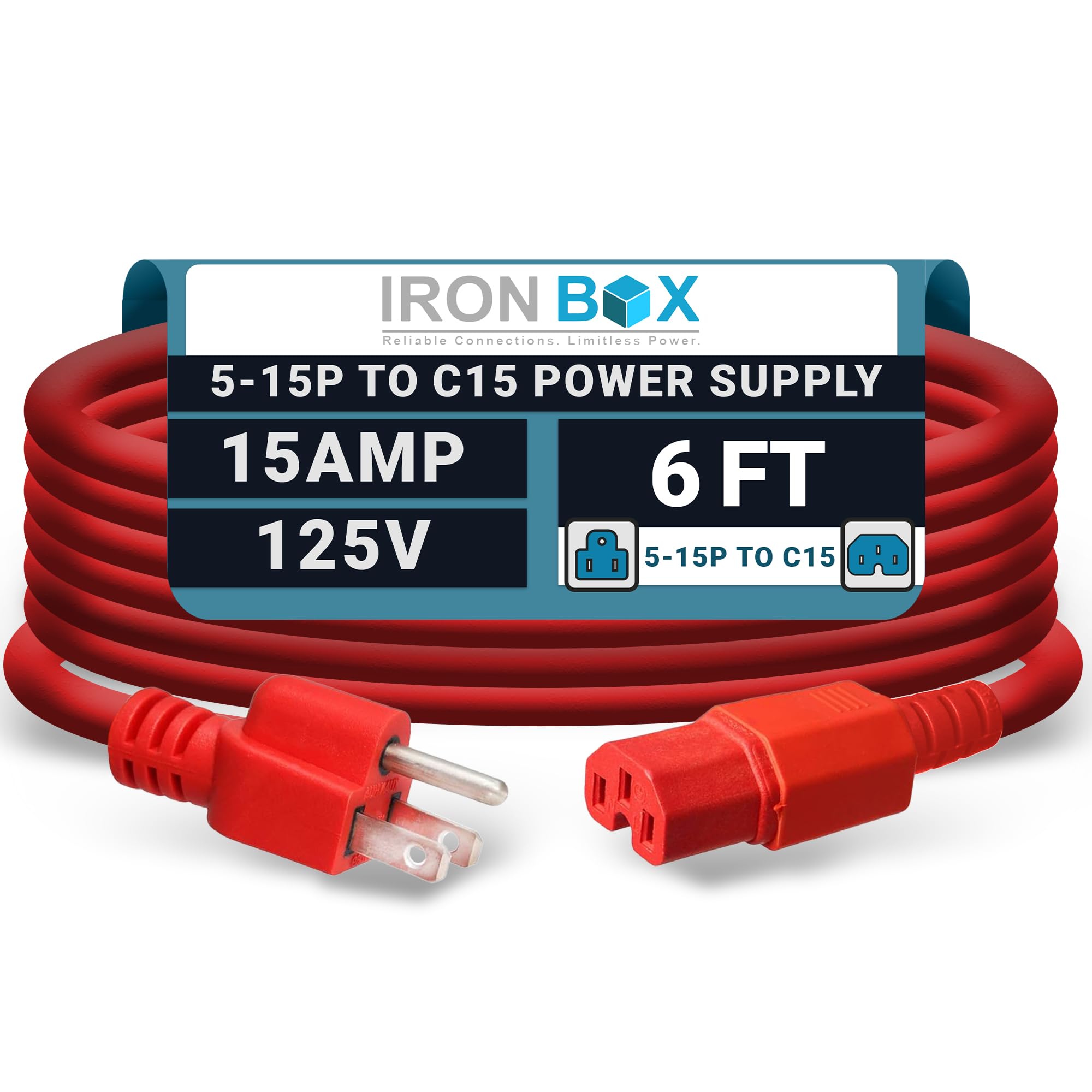 IronBox Electric - Heavy-Duty 5-15P to C15 Power Supply Cable - 15A 125V, 14/3 SJT Supply Cord - Male End 5-15 Plug/Female End C15 Connector - UL|Electronics