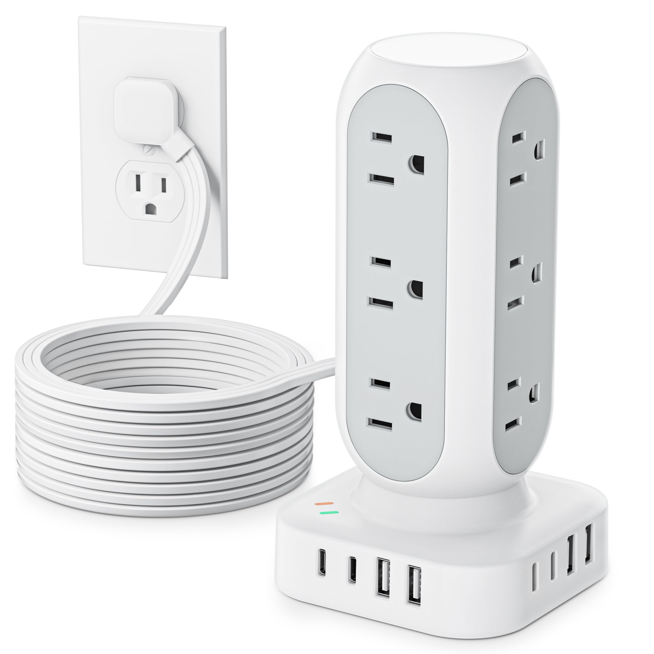 Tower Surge Protector Power Strip, 10FT Extension Cord with Multiple Outlets, Flat Plug Outlet Extender with 12 AC Outlets & 8 USB Ports, 24W Total|Electronics