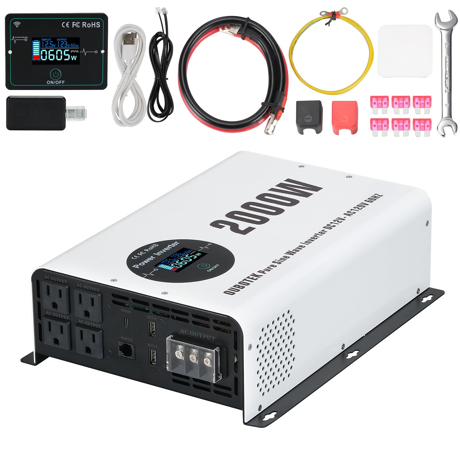 OUBOTEK 2000W Pure Sine Wave Power Inverter DC 12V to AC 120V Converter with LCD Display, Wireless Remote Control, 4 AC Outlets, 1 Hardwire Terminal,|Electronics