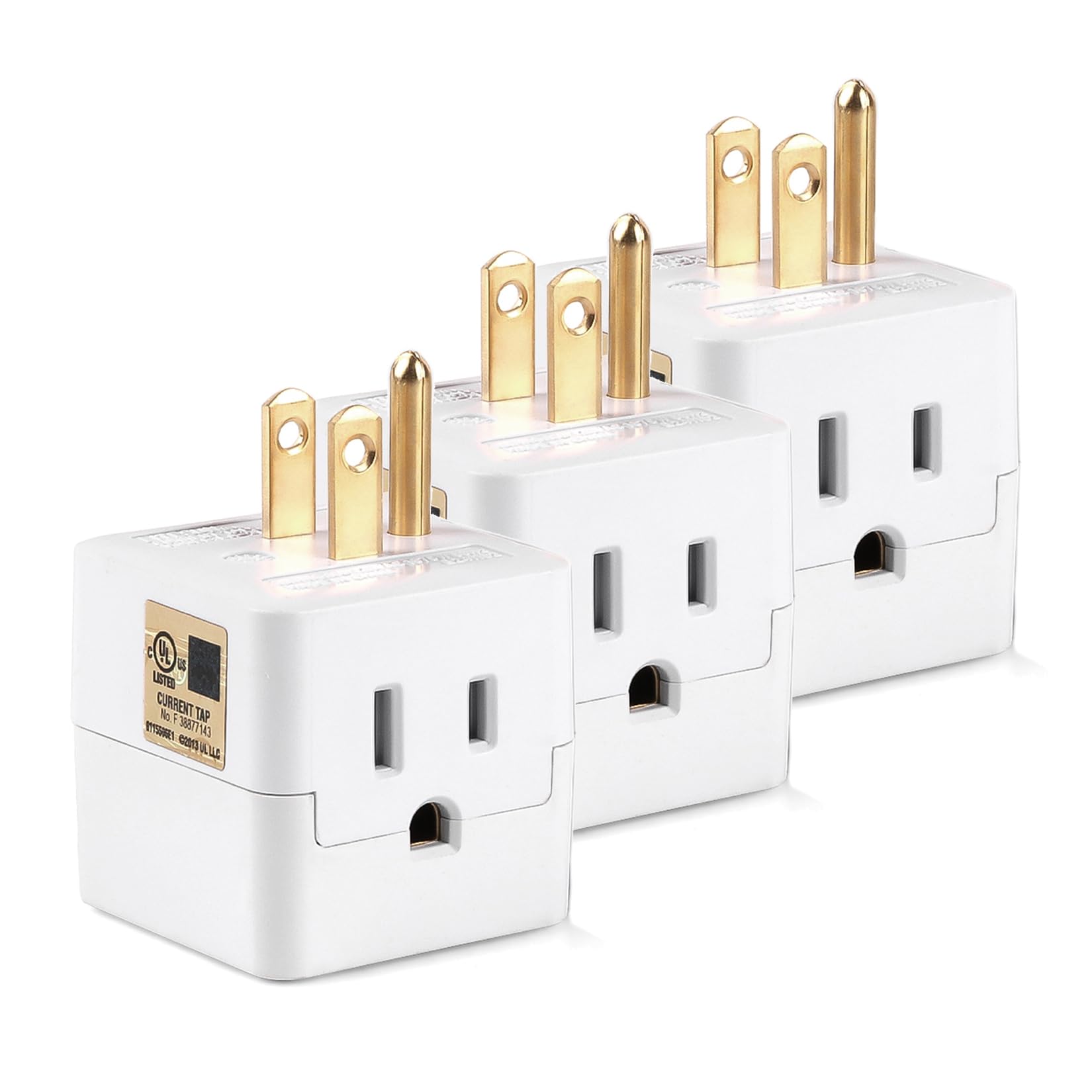 3 Outlet Wall Adapter UL Listed 3 Outlet Power Cube Tap, 3-Prong Outlet Splitter, Multi Plug Outlet Grounded Indoor, 3 Way Plug Adapter, Outlet|Electronics