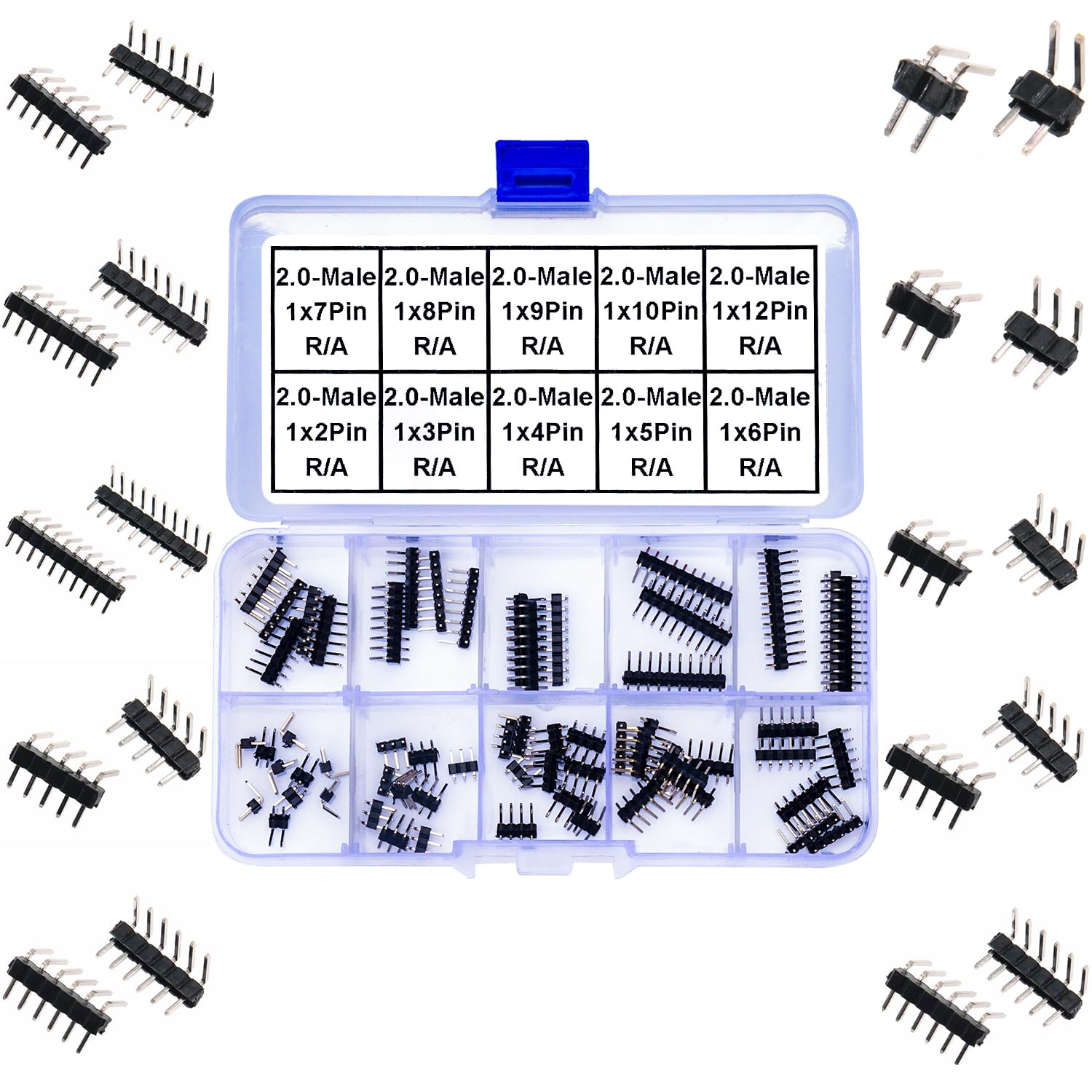 Yoeruyo 2.0mm 180-Degree Pin Headers, 63pcs, Black Plastic, PCB Mount, Male, Single Row, 2-12P, DIY Electronics Connector Kit|Electronics
