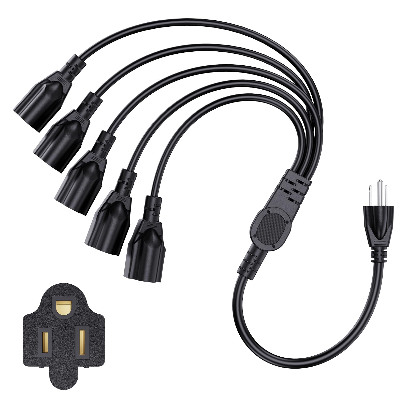 Extension Cord with 1 to 5 Splitter 16 AWG 13A 1625W 20 Inch Black 1 Pack | Outdoor Y-Style SJTW Cord NEMA 5-15P to 5-15R|Electronics