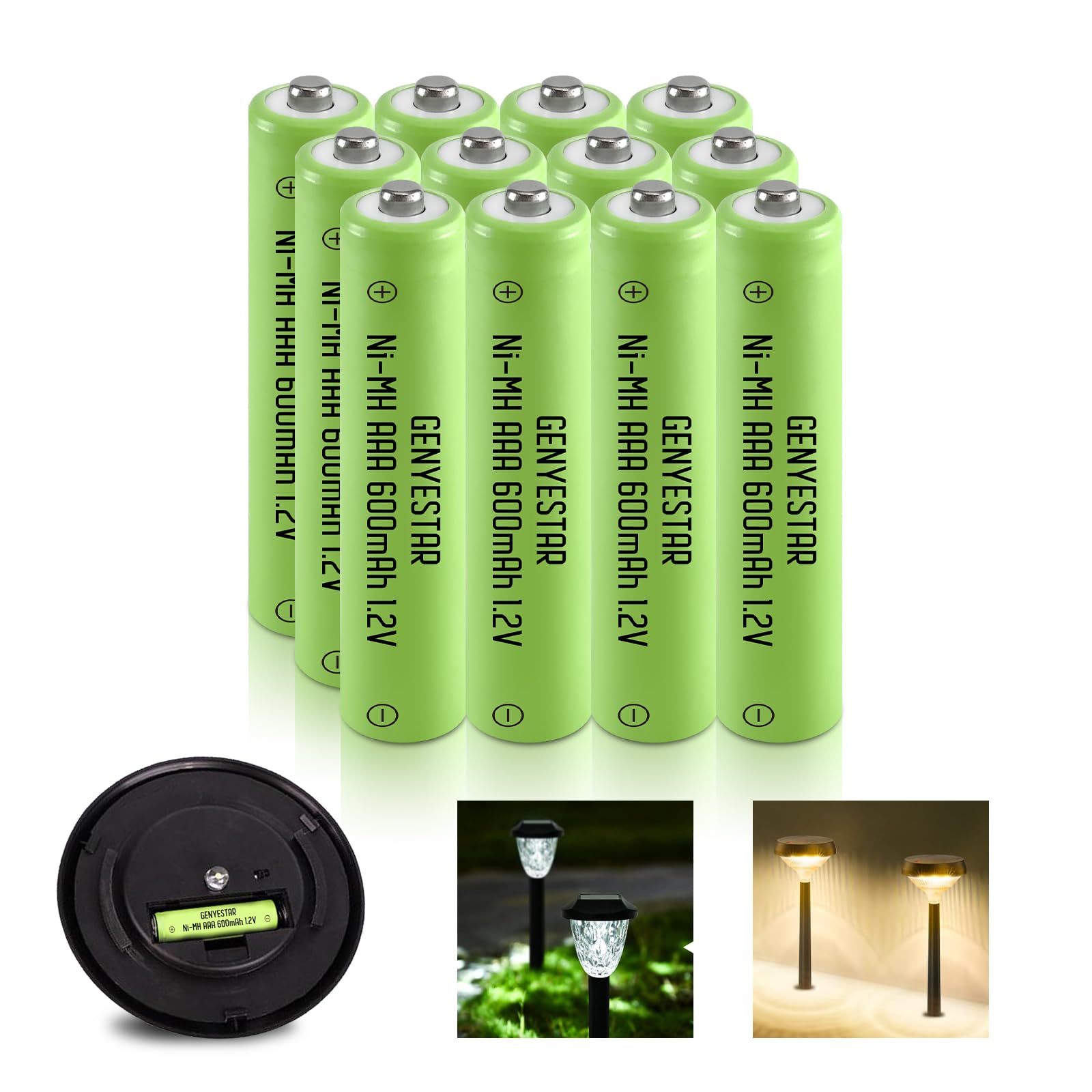 GENYESTAR Ni-MH Solar Lights Rechargeable AAA Batteries, Triple A 600mAh High Capacity 1.2V Pre-Charged Battery for Outdoor Garden Lantern String|Electronics