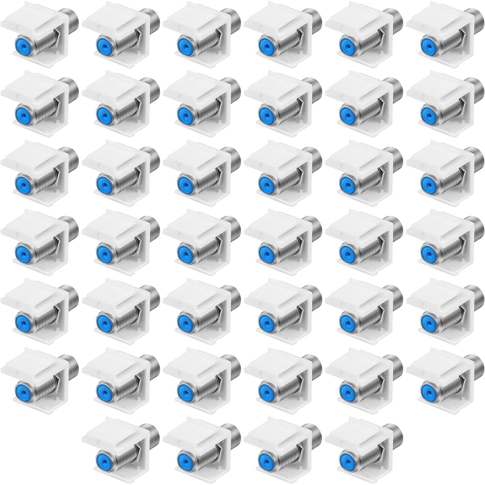 Weewooday 40 Pcs F-Type RG6 Coaxial Cable Connectors, Trapezoidal Keystone Jack Inserts - Blue Inner Core Female to Female Connector, Screw-Type Audio|Electronics