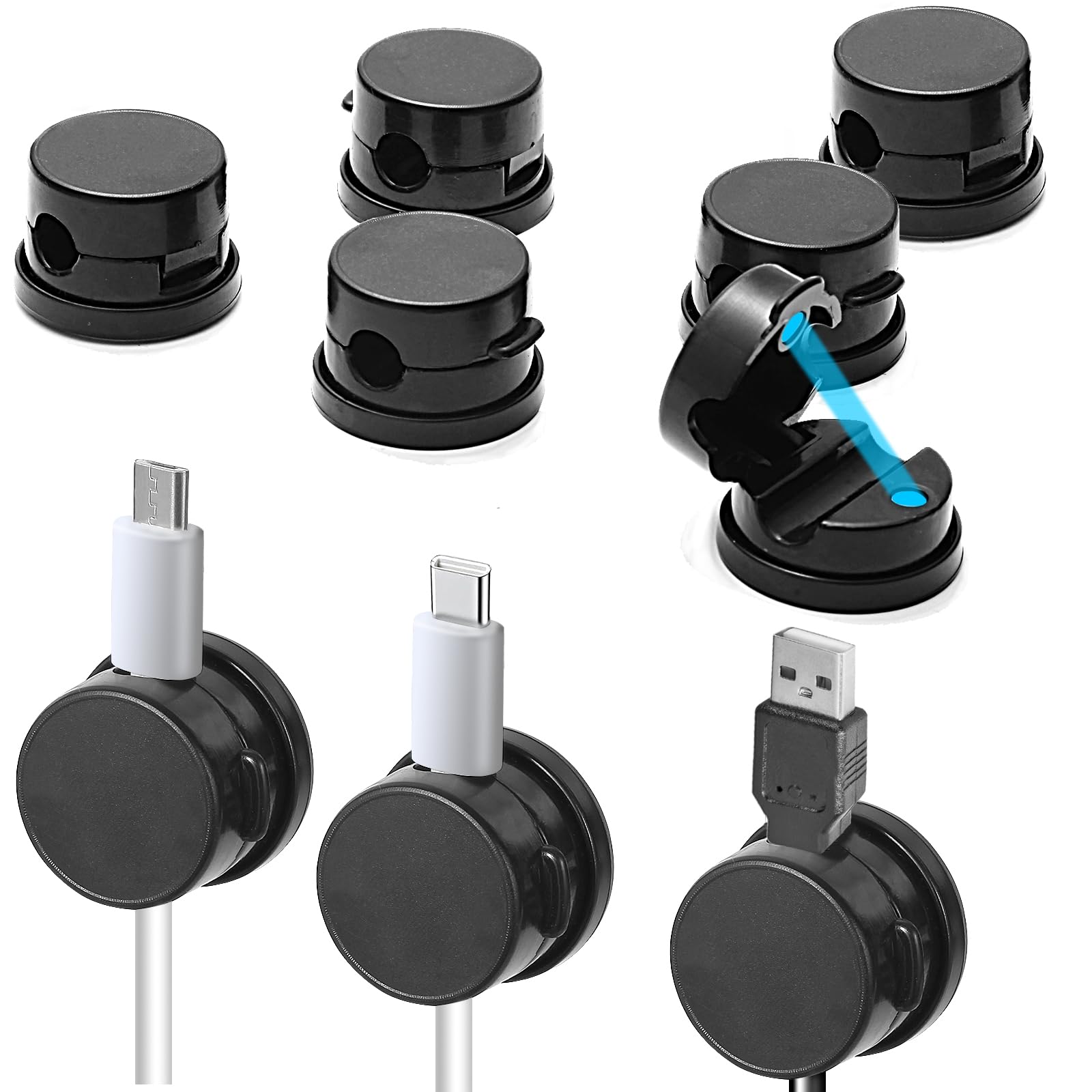 Yoamez Cord Holder for Nightstand - 6 Pack Cable Management Clips with Strong Adhesive, Black Cord Organizer for Phone Charger, Tablets & Electronics|Electronics