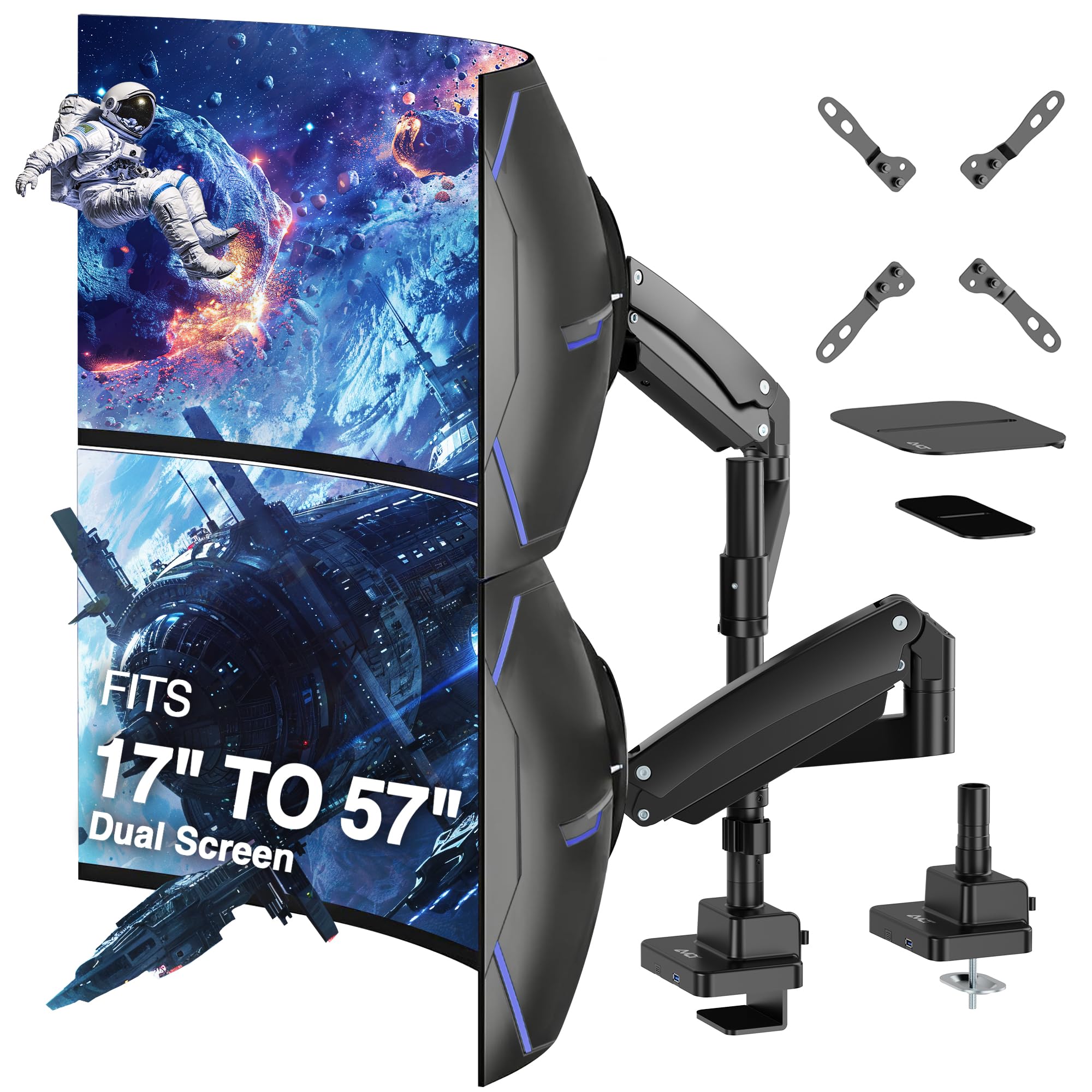 AVLT Dual 57 Inch Heavy Duty Stacking Monitor Arm Pole Top Mount With USB-C USB-A Ports-Black, Height Adjustable, Easy Install Top C-Clamp/Grommet|Electronics