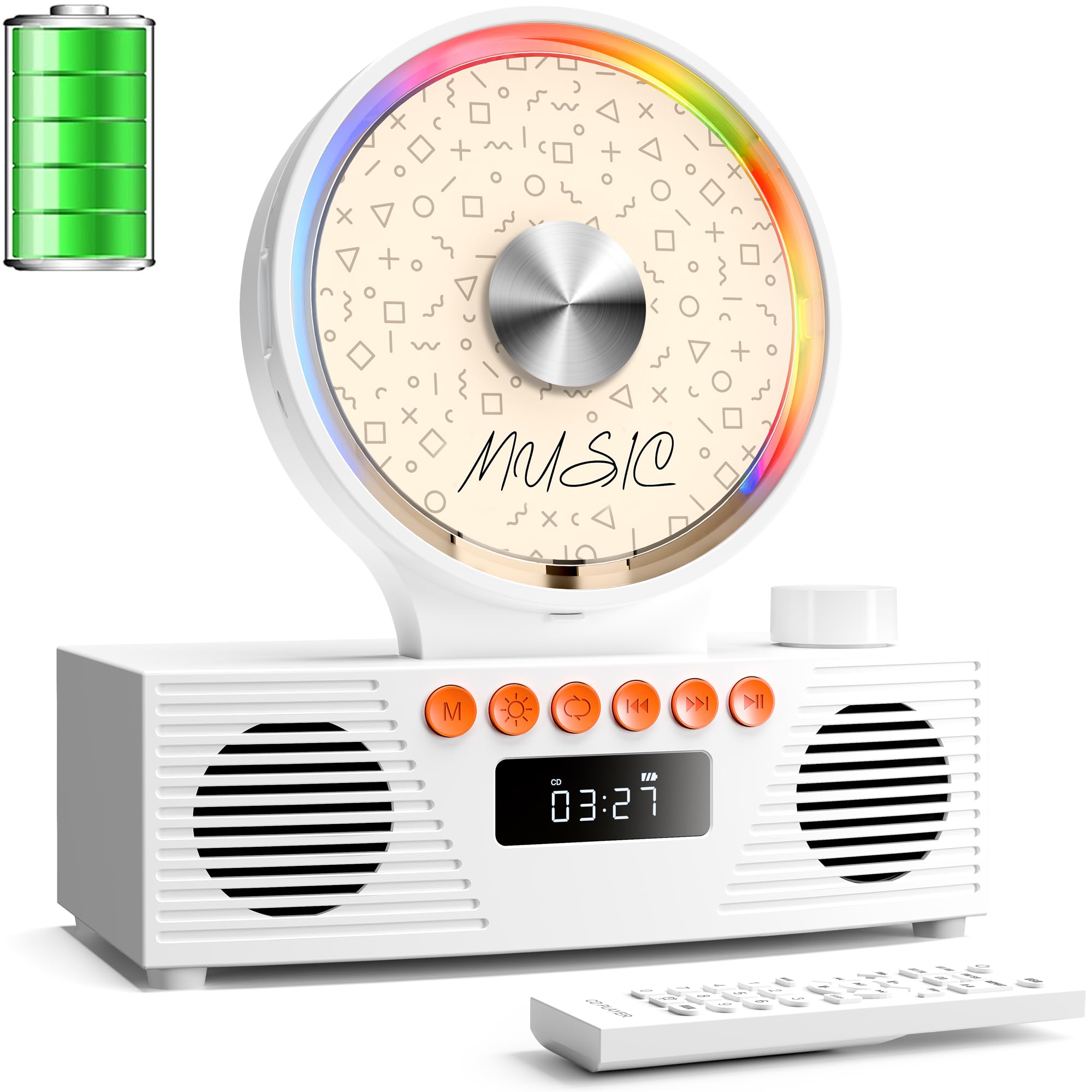 KOGODA Retro CD Player with Bluetooth 5.3 & Dual Speakers, 4000mAh Rechargeable, 6-in-1 Playback (CD/USB/TF/FM/AUX/BT), RGB Light, Portable Desktop CD|Electronics