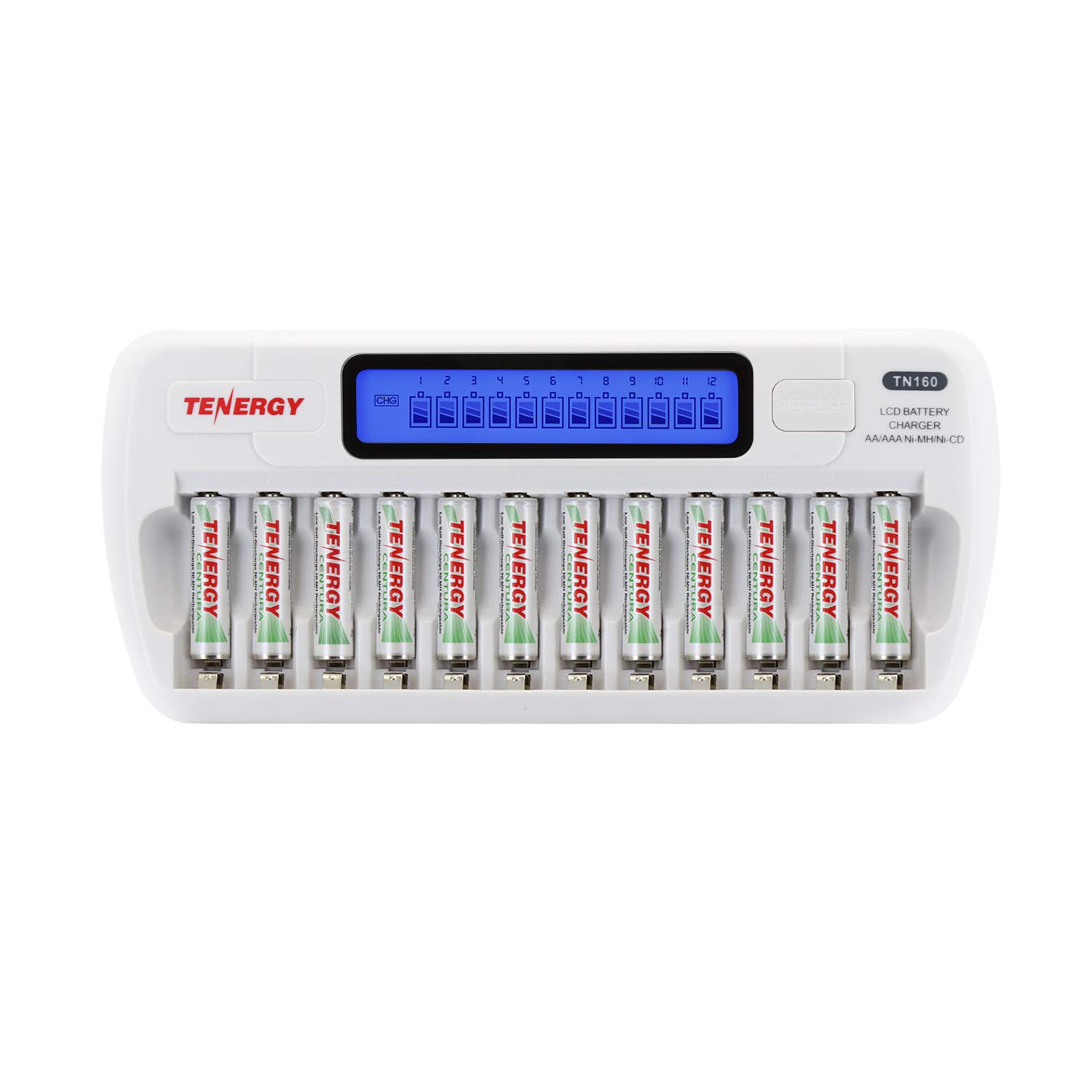 Tenergy 12 Pack Centura AAA and TN160 Charger, Low Self-Discharge AAA 1.2V 800mAh NiMH Rechargeable Batteries for Remote Controllers, Toys, and More|Electronics