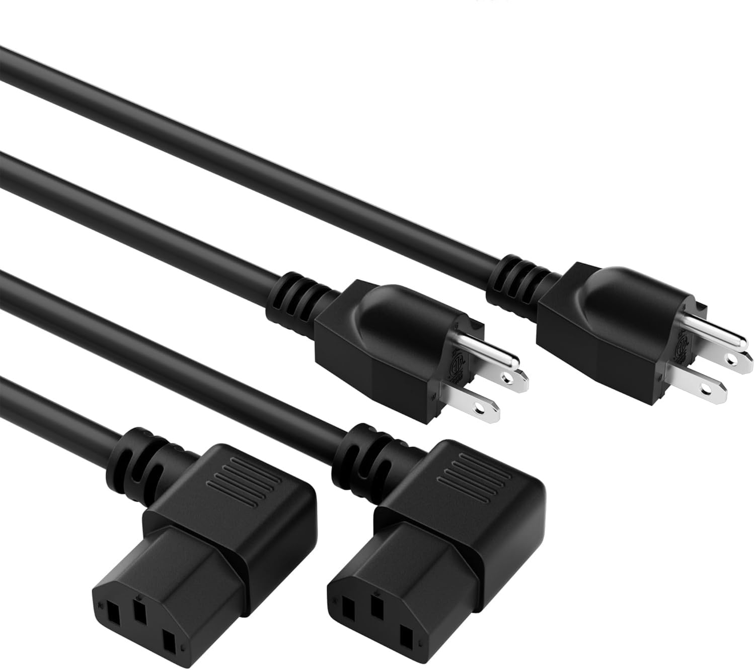 Elecan 3-Prong Straight to 90 Degree Angled Plug Replacement Power Cord 2 Ft/2 Pack, Heatproof Flexible Durable AC Device Power Cable for Appliance|Electronics