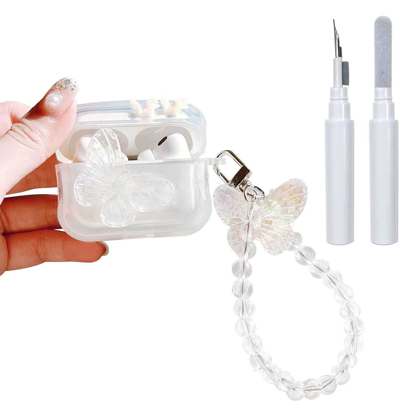 Fycyko Compatible with AirPods Pro 2 Case with Girls Cute Clear Glitter Butterfly Flowers Design Soft TPU Cover Case+Butterfly Crystal Chain for|Electronics
