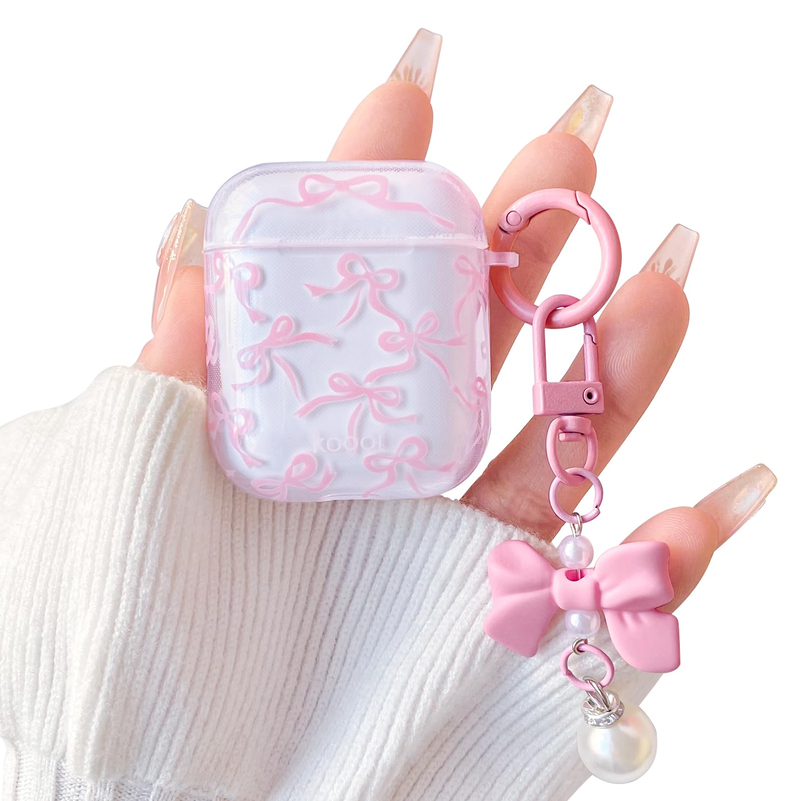 Lovmooful Compatible for AirPods 2nd/1st Case Cute Clear Ribbon Bowknot with Lovely Pearl Chain Design for Women Girls Soft TPU Shockproof Protective|Electronics