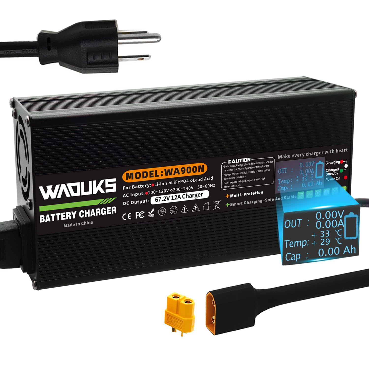 WAOUKS 67.2V 12A Li-ion Battery Charger Aluminum Case Used for 16S 59.2V 60V Lithium Battery Fast Charger with DC Output XT60 Male Connector|Electronics