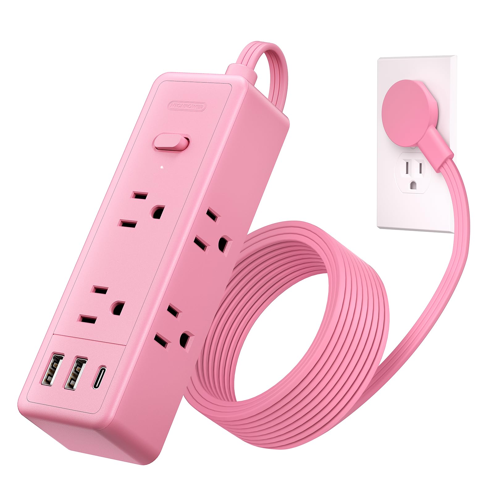 NTONPOWER Pink Extension Cord 5 ft, 1080 Joules Surge Protector Power Strip, Flat Plug Extension Cord with 6 Widely Outlets 3 USB (1 USB C), Power|Electronics