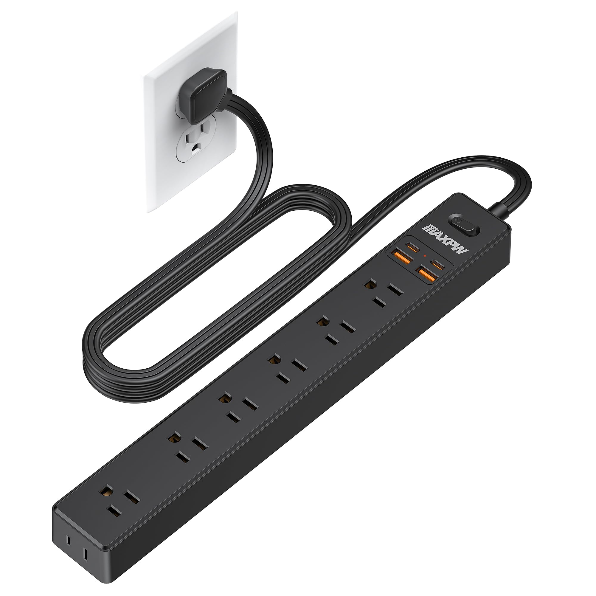 6 Ft Power Strip Surge Protector - 7 Outlets 4 USB Ports (2 USB C), Ultra Thin Flat Extension Cord & Flat Plug, 1700 Joules, Wall Mount, Desk Charging|Electronics