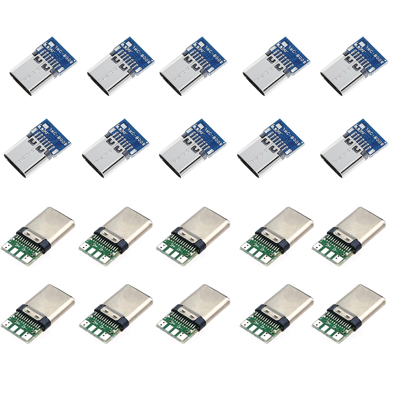 Teansic 20 Pcs 24 pin Type C Male Female Plug Socket Connector with PCB Board,USB 3.1 Connectors Adapter to Solder Wire & Cable (10 Pcs Male + 10 Pcs|Electronics