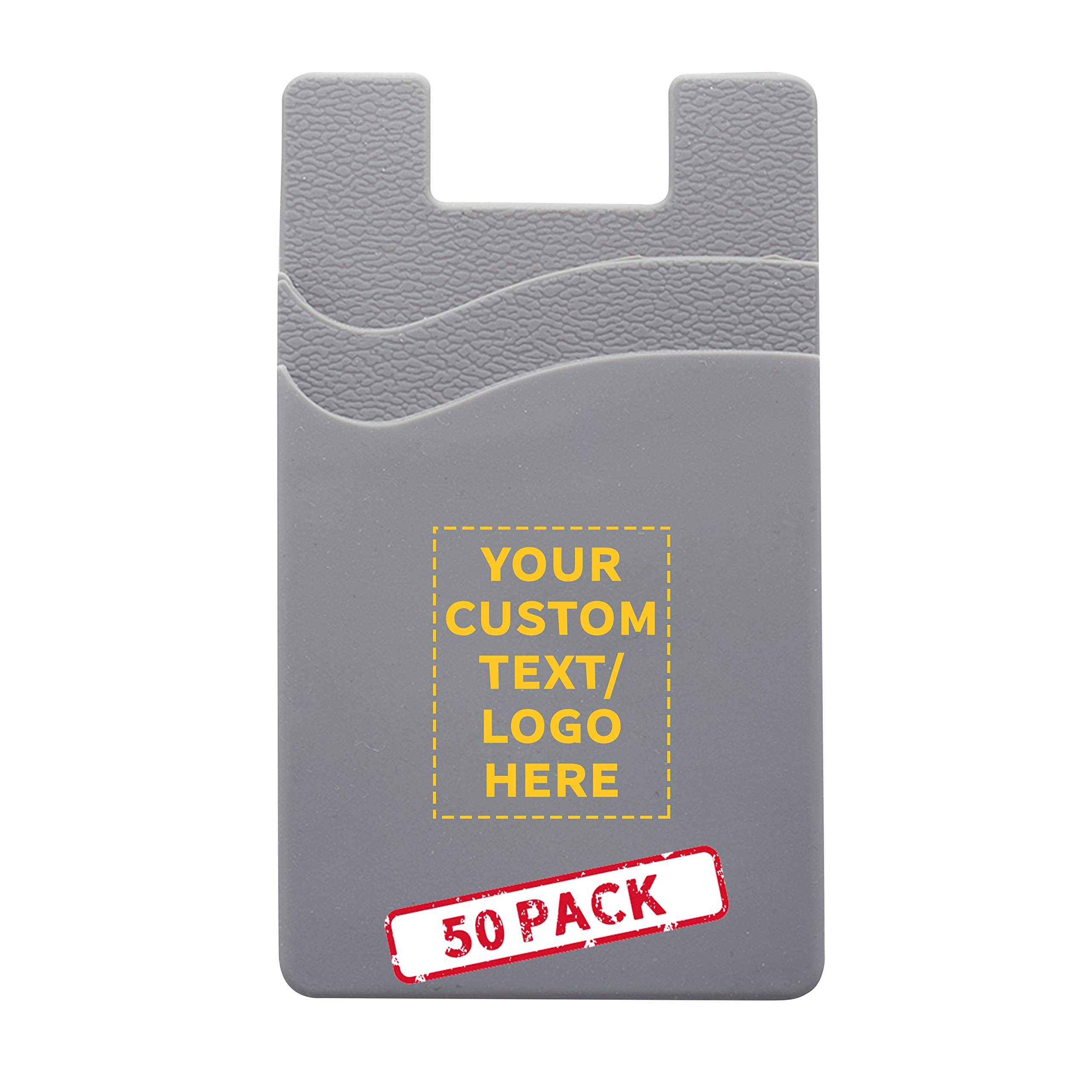 DISCOUNT PROMOS 50 Montego Silicone Phone Wallets Pack - Customizable Text, Logo - Strong Adhesive, Dual Pocket - Grey|Electronics