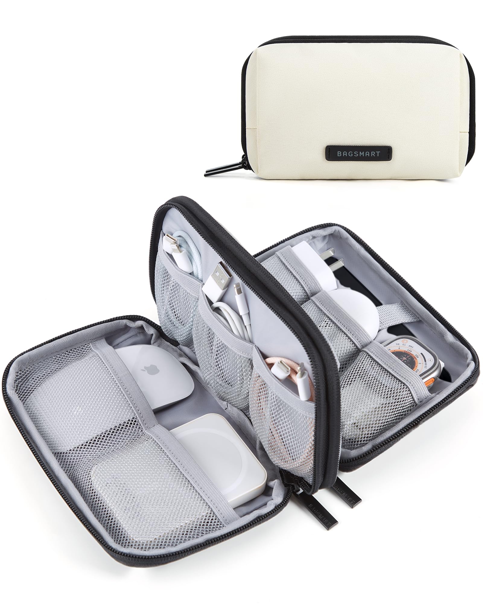 BAGSMART Electronics Organizer Travel Case, Cable Charger Cord Tech Organizer Pouch for Phone Charger Accessories, Beige|Electronics
