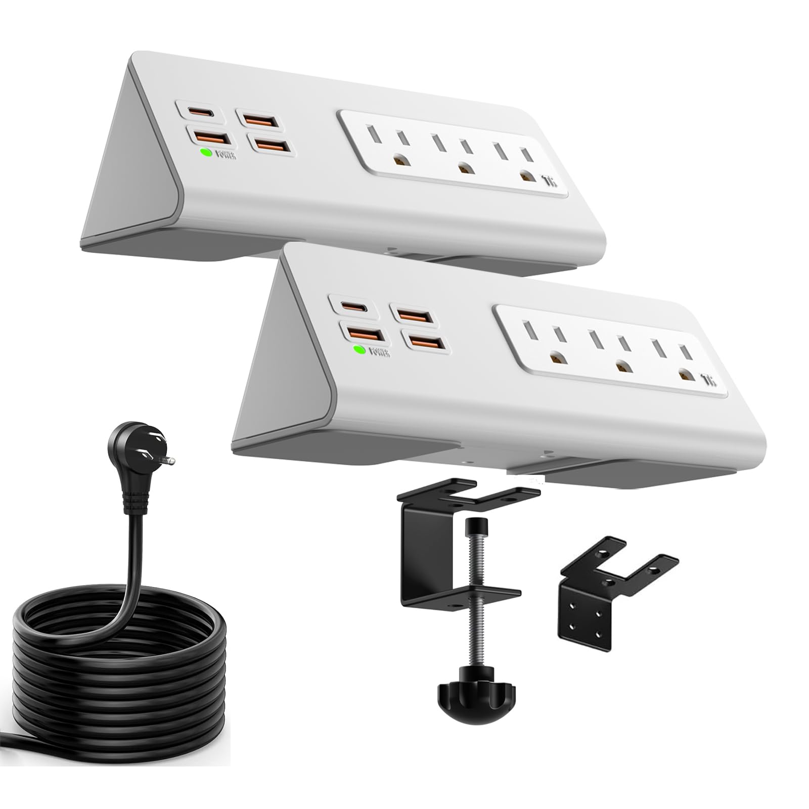 Upgraded Version Edge Mount Power Strip with USB-C Ports Tabletop Surge Protector Desk Clamp Power Sockets with 3 AC Outlets &4 Fast Charging USB|Electronics