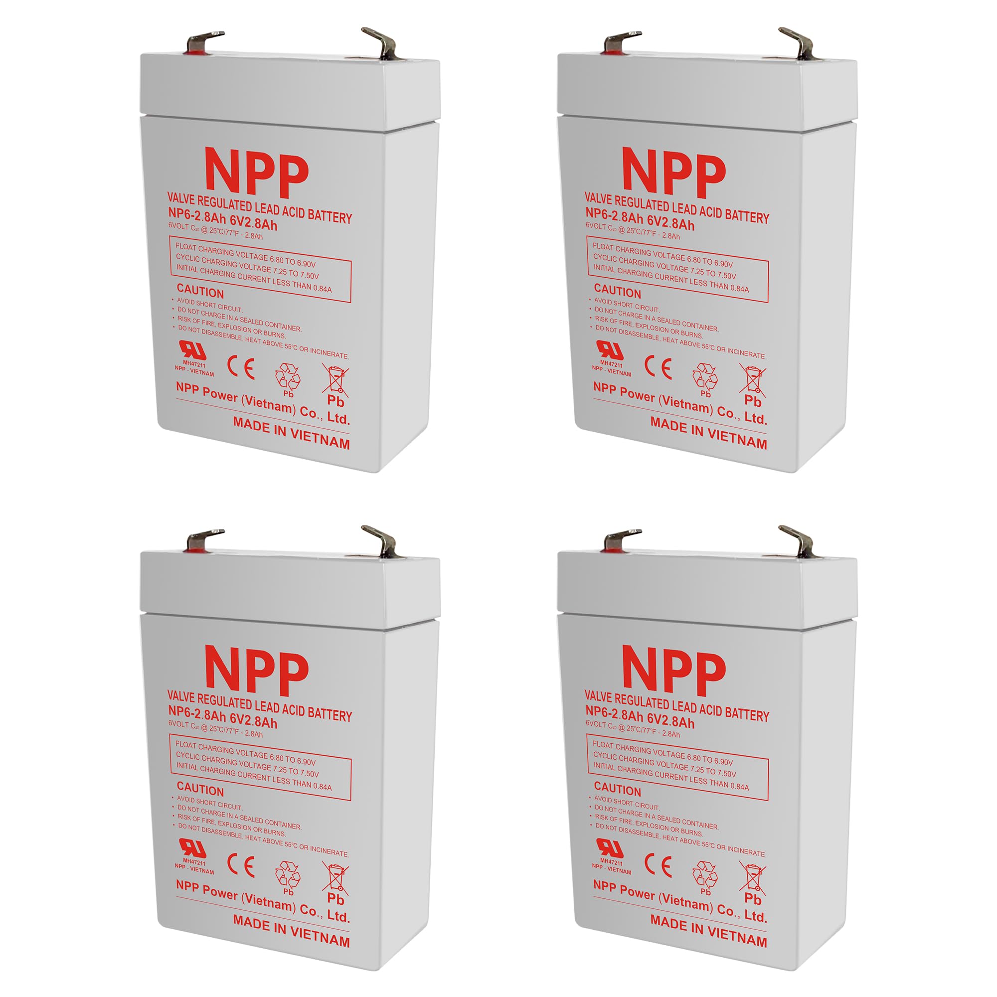 NPP NP6-2.8Ah 6Volt Rechargeable Sealed Lead Acid 6V 2.8Ah AGM Battery for Attendance Machine, Security Alarm System and Mini Instrument (F1, 4 Pcs)|Electronics
