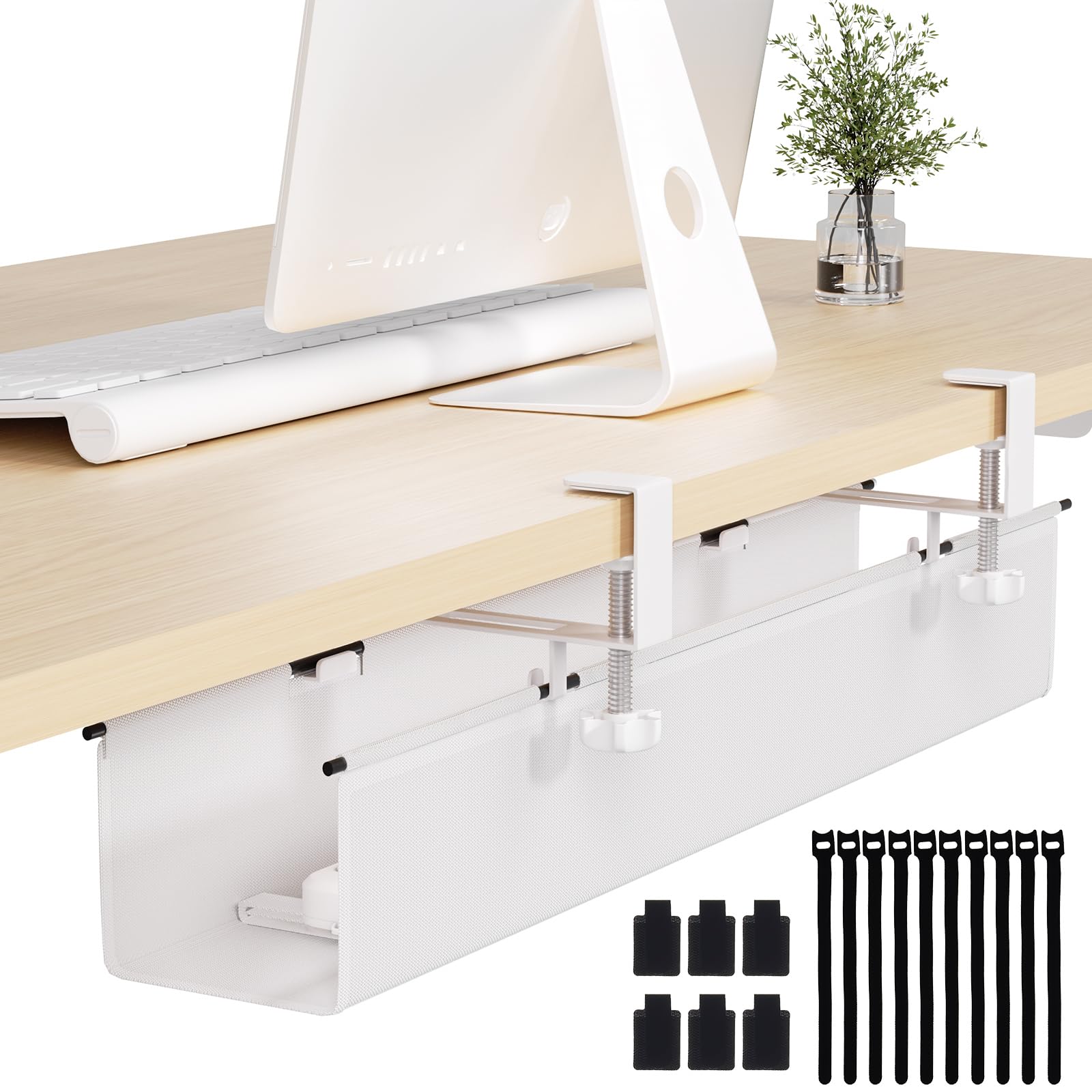 Under Desk Cable Management Tray 27.2" - No Drill Computer Wire Organizer Cable Tray, Cord Hider Clamp Mount with 16X Cable Ties PC Cables Management|Electronics