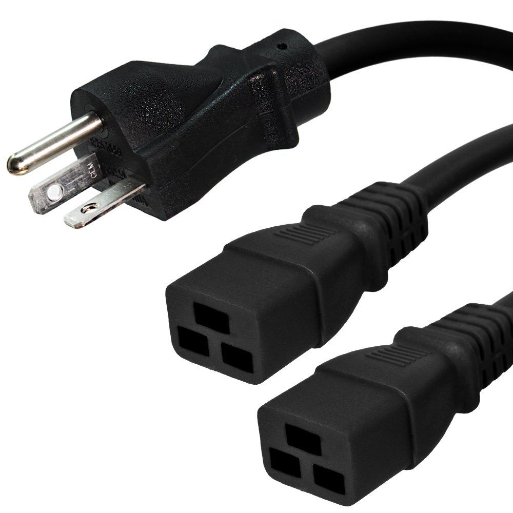 6-20P to 2X C19 Y Splitter Power Cord, 20A, 250V, 12/3 SJT, 2ft + 2ft Legs|Electronics