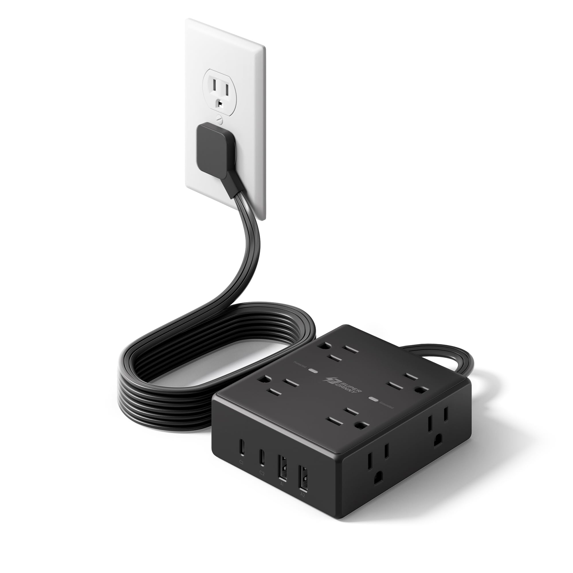 SUPERDANNY 15A Power Strip Surge Protector 5000 J with 13 AC Outlets 2 USB-A & 2 USB-C PD 20W Fast Charging Heavy Duty 14AWG/3C Industrial Grade 10ft|Electronics