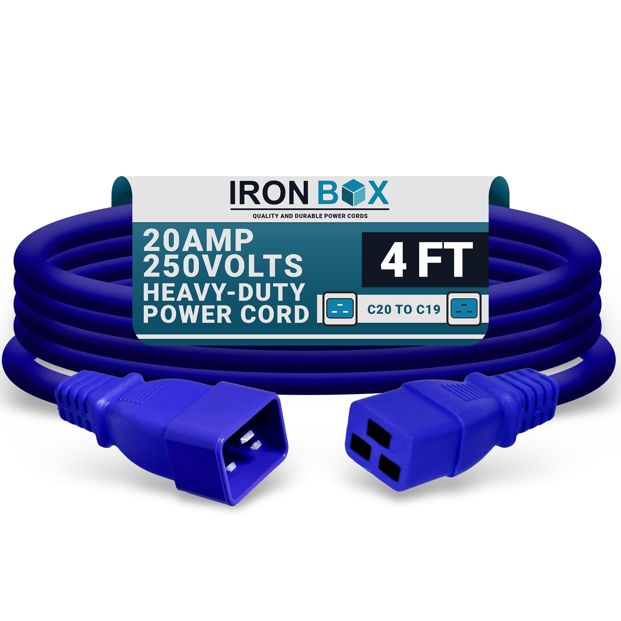 IronBox Electric - Heavy-Duty C20 to C19 Power Cord - 20A/250V Rated, 12/3 SJT IEC 60320 Equipment to PDU Cable - Male End C20 Plug/Female End C19|Electronics