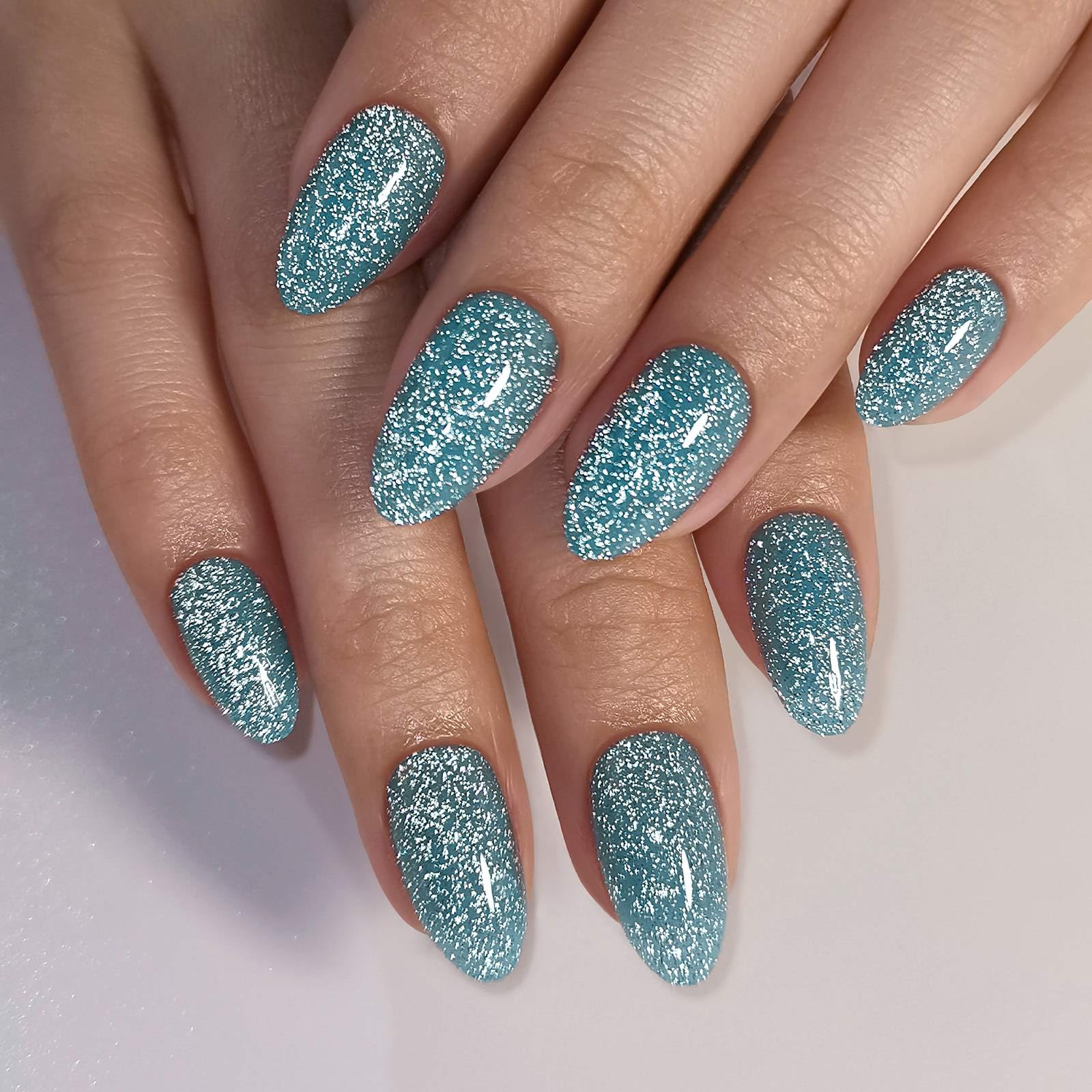 SHANGMENG Glitter Peacock Blue Press on Nails Almond Short with Sparkling Diamond - Soft Gel Fake Nails for Women Gift, Glossy Stick On Nails with|Health & Beauty