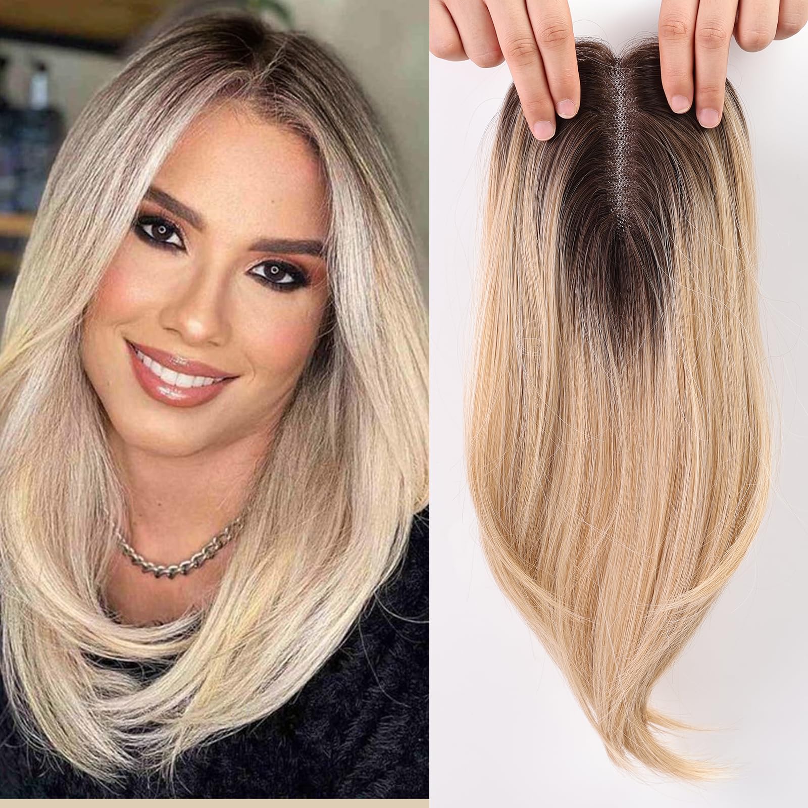 Starluck 18 Inch Light Blonde & Brown Hair Topper for Women - Synthetic Hair with Swiss Base & 3 Clips|Health & Beauty