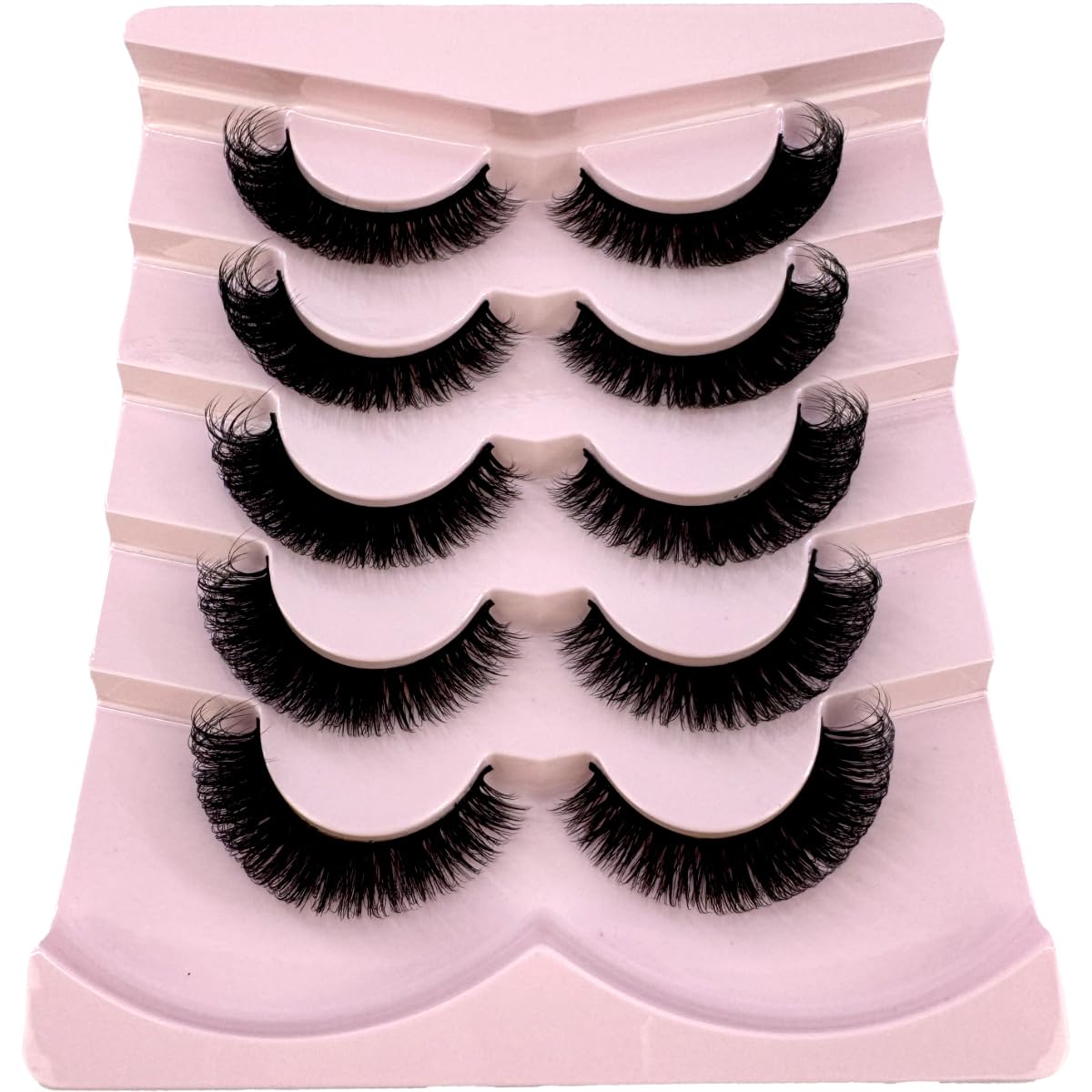 HBZGTLAD Cat eye Eyelashes 3D Natural False Lashes D Curl Fluffy Soft Cross 5 pairs Manga Lashes Wispy Natural Eyelash Extension Makeup (HB114)|Health & Beauty