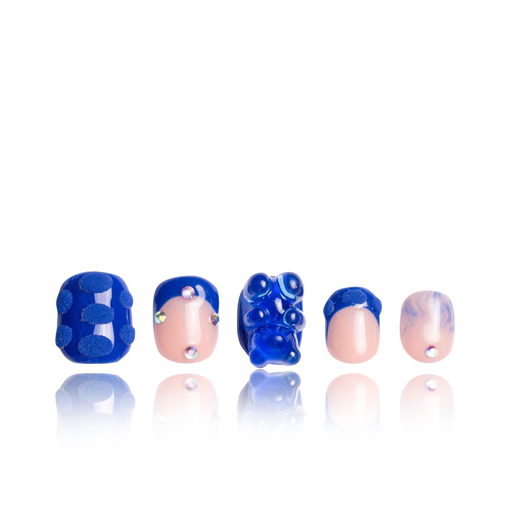 LOVFUL Press on Nails Little Blue Bear Blue French Tip| Handmade with Full Covered Crystals | Reusable Fake Nails | Square Short 0.8 in | H132-S|Health & Beauty