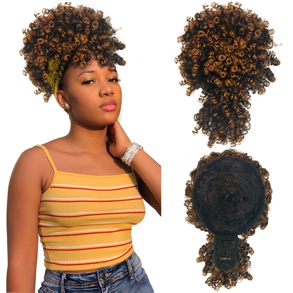 MODSIGHT Afro Puff Drawstring Ponytail with Bangs, Black to Auburn Brown Kinky Curly Ponytail Bun with Bangs Updo Hairpieces, Short Afro Puffs with|Health & Beauty