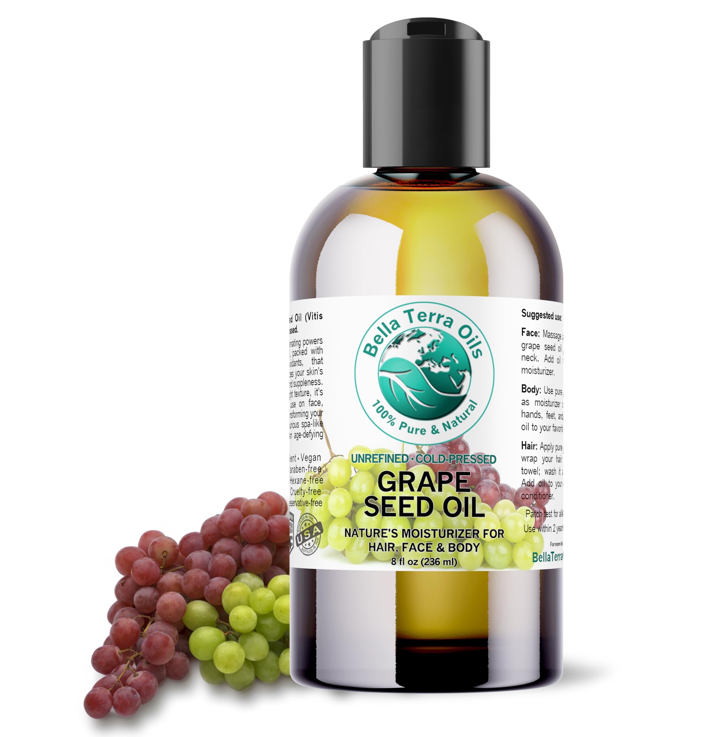 Bella Terra Oils - Organic Grape Seed Oil 8 oz - Dive into Organic Grape's Nutritional Power, Packed with Antioxidants & Omega-6, Elevate Your Skin|Health & Beauty