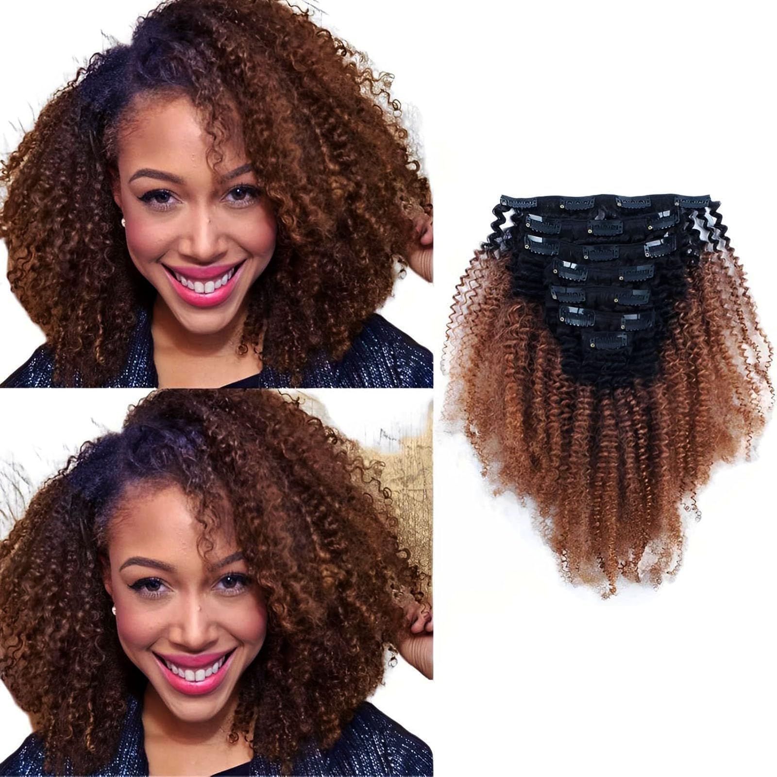 ABH AMAZINGBEAUTY HAIR Afro Curly Clip in Hair Extensions Real Human Hair 4A 4B Curly Clip ins for Black Women 120g 7 Pieces 17 Clips, Ombre 1B to|Health & Beauty