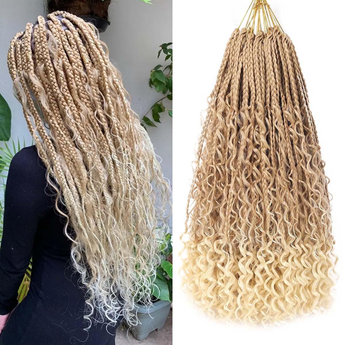 COOKOO 8 Packs Goddess Box Braids Crochet Hair 18 Inch Bohemian Hippie Box Braids Crochet Hair with Curly Ends Synthetic Crochet Braiding Hair for|Health & Beauty