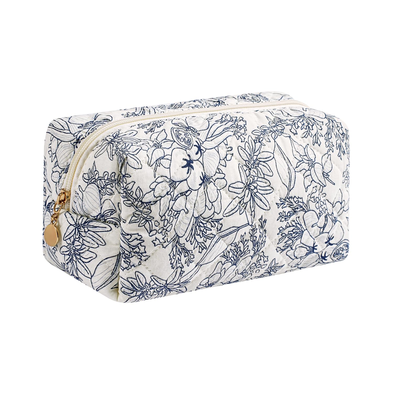 Gleyemor Small Quilted Makeup Bag for Women, Cute Floral Bow Cosmetic Bag, Emergency Bag Travel Toiletry Cotton Pouch Gifts for Girls Her Mom Friend|Health & Beauty