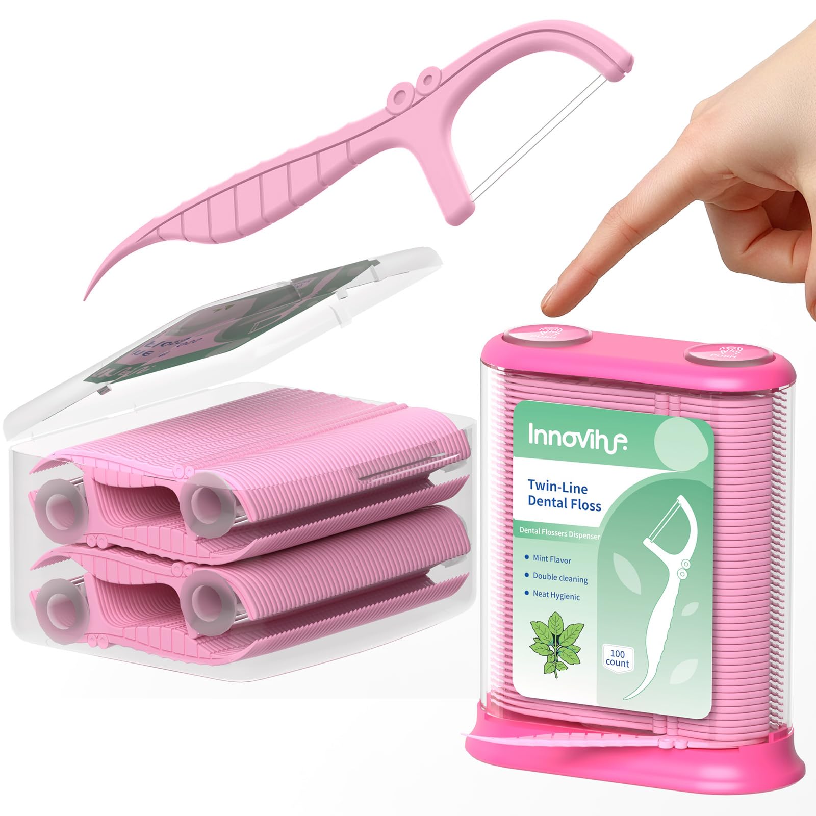 Pink Dental Floss Picks Dispenser, Flossers Large Storage Container, Twin Line Flosser 300 Count, Mint Flavor, Oral Care Picks for Home, School,|Health & Beauty