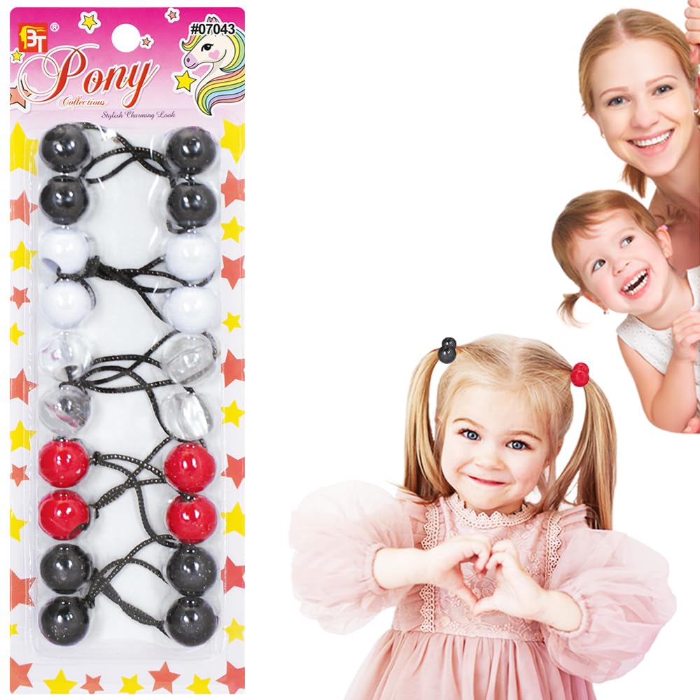 10 Pcs 20mm Ball Hair Ties Ponytail Holders Twinbead Bubble Balls Hair Accessories for Girls Kids Toddler (Black/White/Clear/Red Assorted)|Health & Beauty