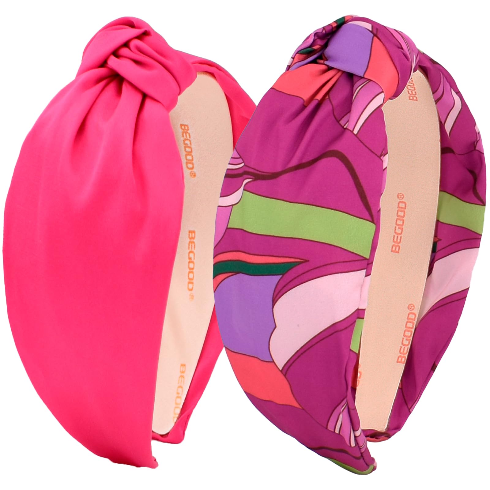 BEGOOD Headbands for Women Pink Knotted Wide Headband Fashion Tropical Top Knot Hairbands Womens Head Band Girls Hair Accessories 2Pcs|Health & Beauty