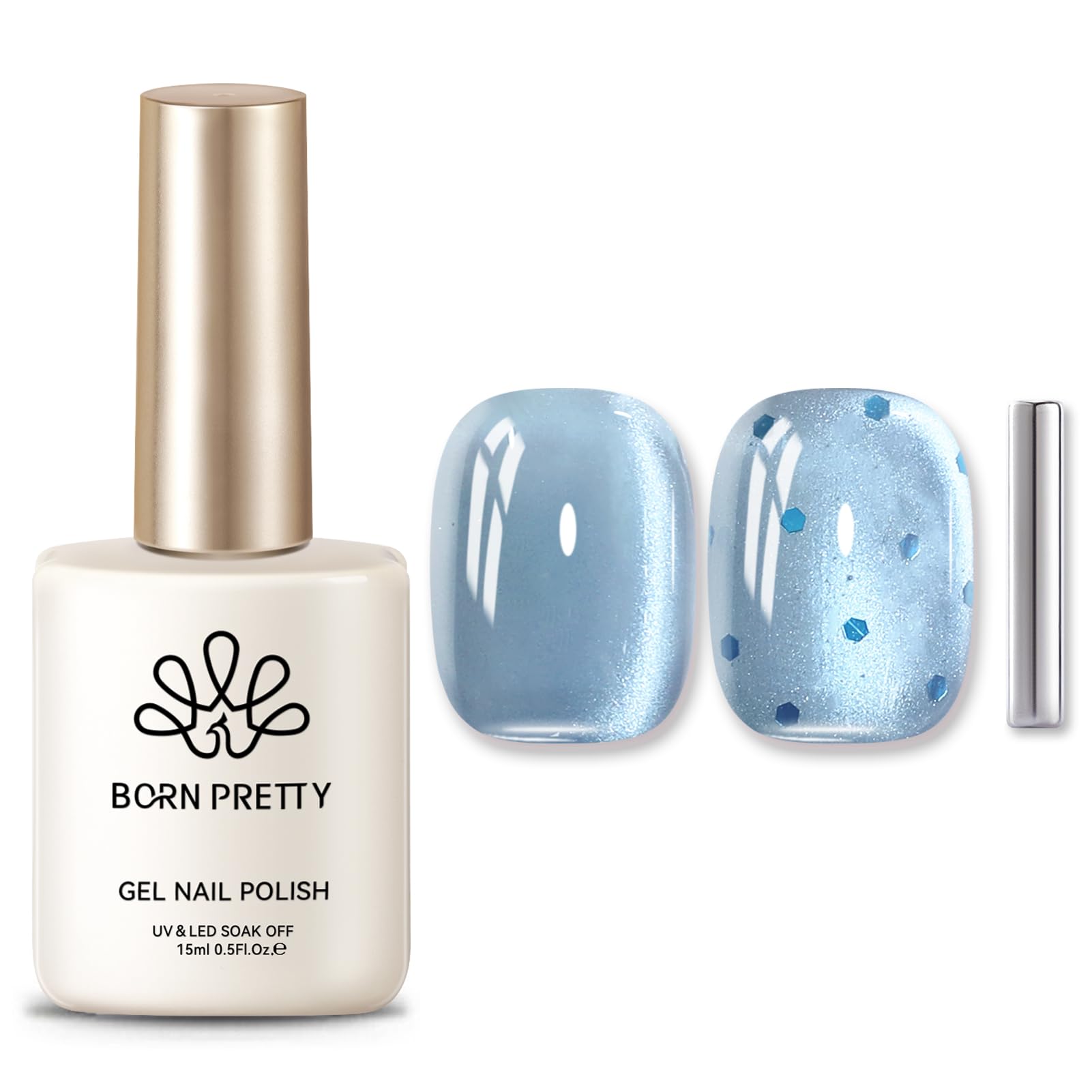 BORN PRETTY Cat Magnetic Eye Gel Nail Polish, Blue Glitter Cat Magnetic Gel Nail Polish, Crescent Bay Magnetic Nail Polish for Nail Art Manicure Salon|Health & Beauty