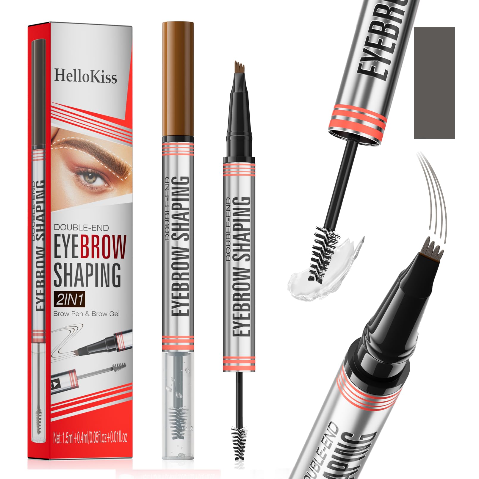 9705 2in1 Hilibrand 4-Pronged Dual-Ended Eyebrow Pencil&Eyebrow Gel, 4-Pronged Ultra-Fine Realistic Eyebrow Pencil End, Eyebrow Setting Wax End,|Health & Beauty