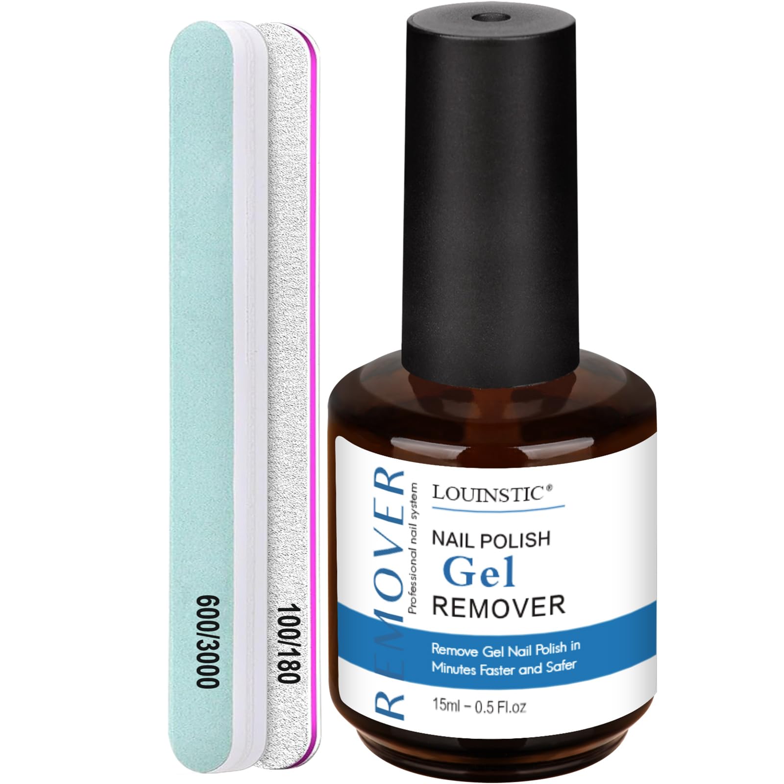 LOUINSTIC Gel Nail Polish Remover Kit – Fast & Gentle & No Damage to Nails,Includes Nail Files for At-Home Manicure, Safe & Non-Damaging Nail Care for|Health & Beauty