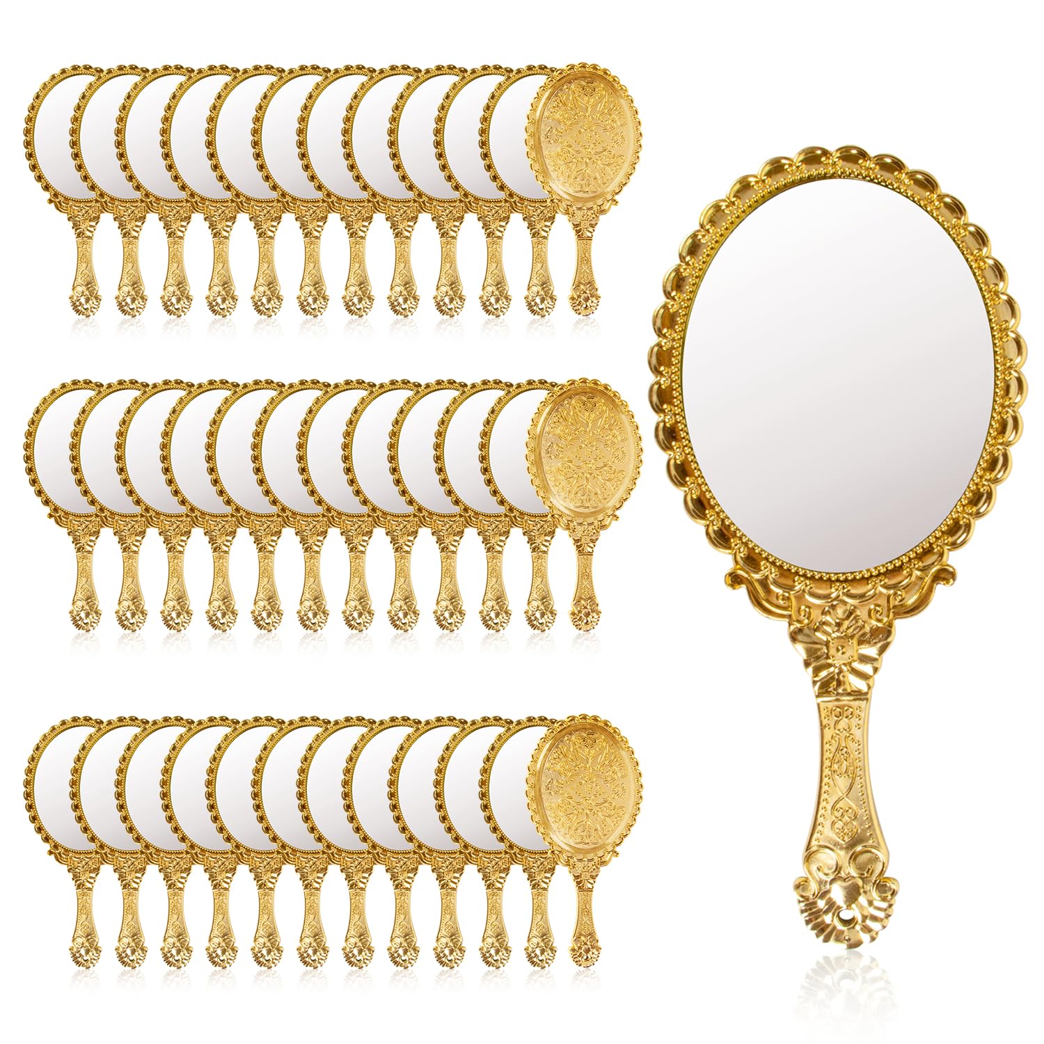 YUSONG 36 Pcs Vintage Handheld Mirror for Makeup - Travel Handle Mirrors for Women Gold Embossed Flower Portable Princess Mirror Tabletop Party|Health & Beauty